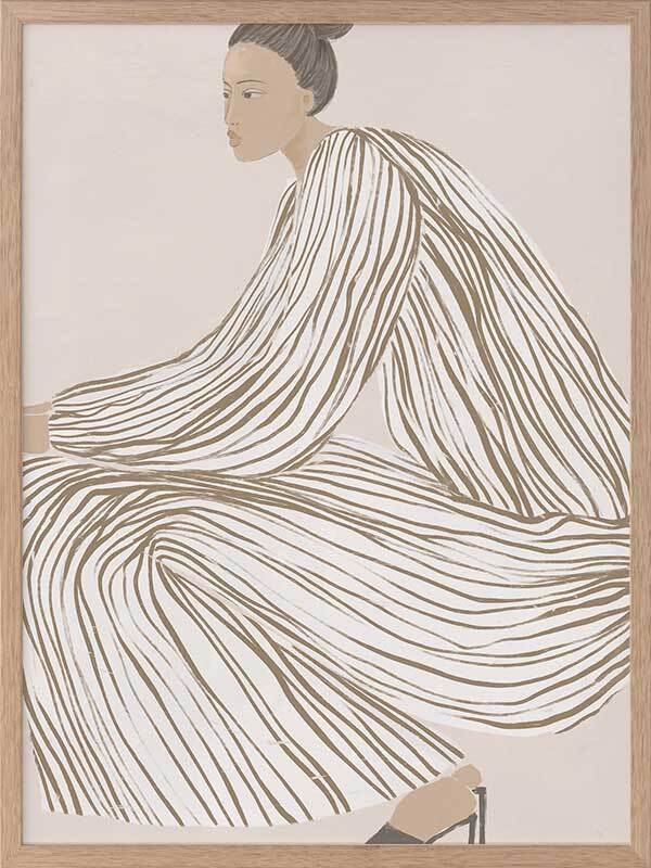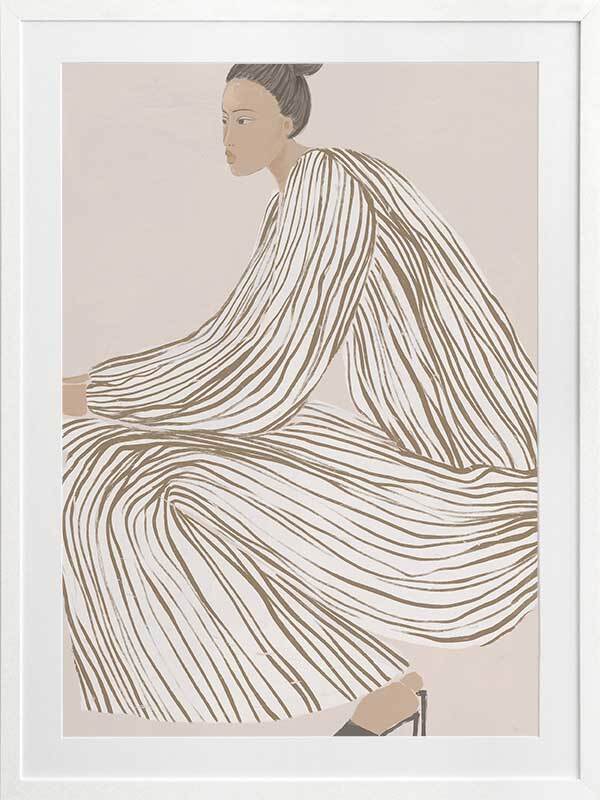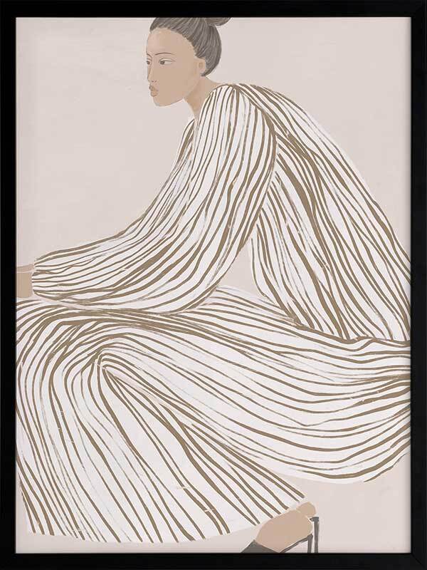 Delilah Dazzling Framed Art Print - Calm and composed, Delilah Dazzling captures a pensive moment, sitting down, gazing into the distance. A stripped-back palette of neutrals including warm brown, beige, white and black, this artwork displays beautifully in any room as a statement piece.