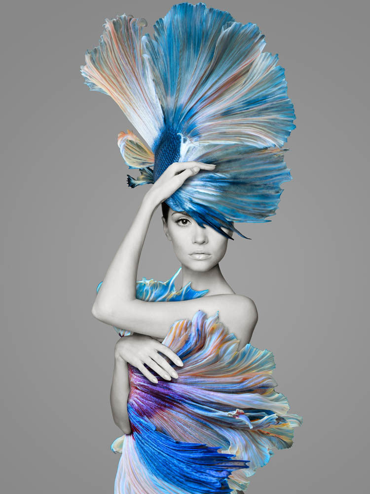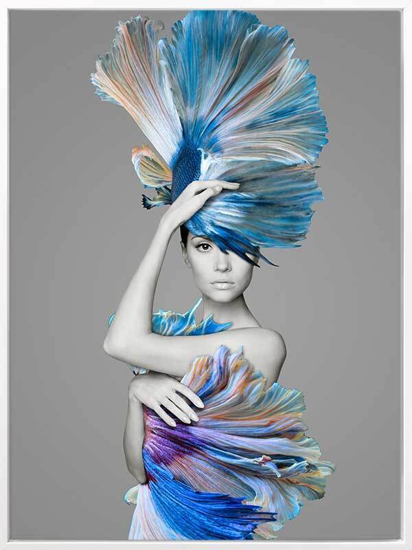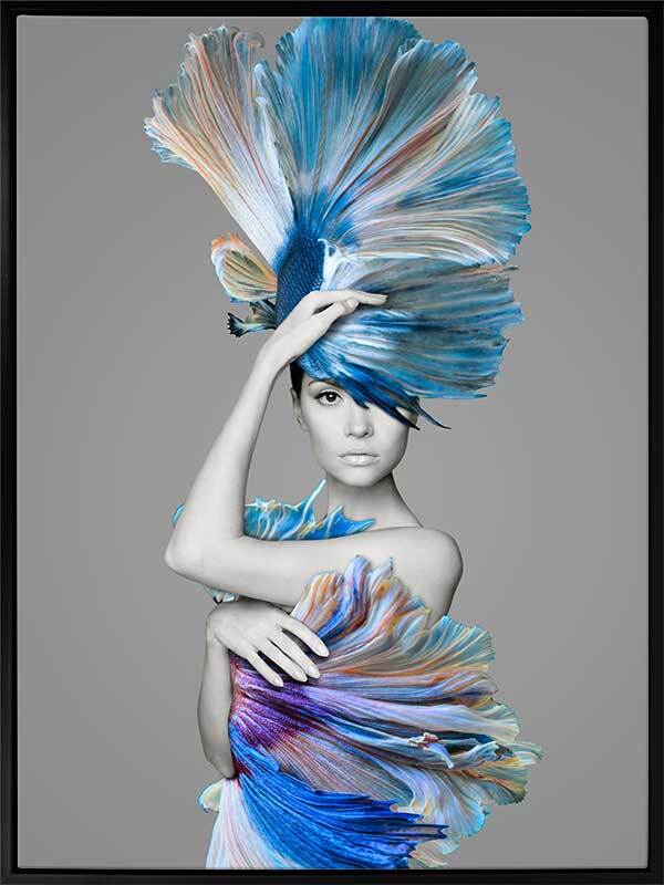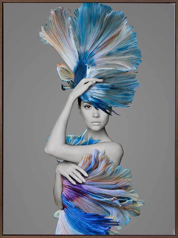 Delphine Canvas Art Print: The blue of the ocean combines with skin tones in this artistic study of the female form and feather tail betta fish features. 2017 AUTUMN/WINTER COLLECTION: ILLUSION