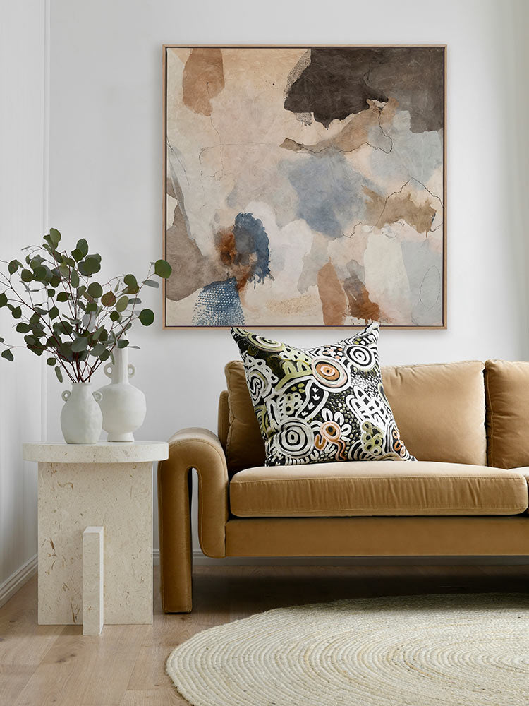 Desert Rain I Canvas Art Print - Echoing the raw beauty of a desert landscape, this cool abstract art print blends earthy browns and soft blue tones. The organic flow of colour and texture creates a rich, layered effect that brings depth and intrigue to any space. Perfectly versatile, this artwork complements both contemporary and rustic interiors, adding a sense of warmth and tranquillity to your walls.