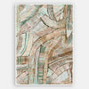 Dhala-bu-nya Bula Green Unframed Art Print - Sharp and methodical, this labyrinthine contemporary Indigenous Aboriginal piece features ladder like structures weaving and overlapping one another, representative of the earth's cracks and crevices after a drought. Artist Amanda Hinkelmann has used this piece to create a visual metaphor for reluctanct acceptance of support after neglect. The colour palette is earthy and muted, featuring warm, coffee brown tones interspersed with grey, beige, aqua and green shades.
