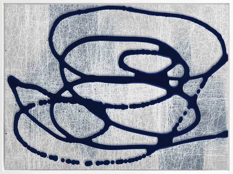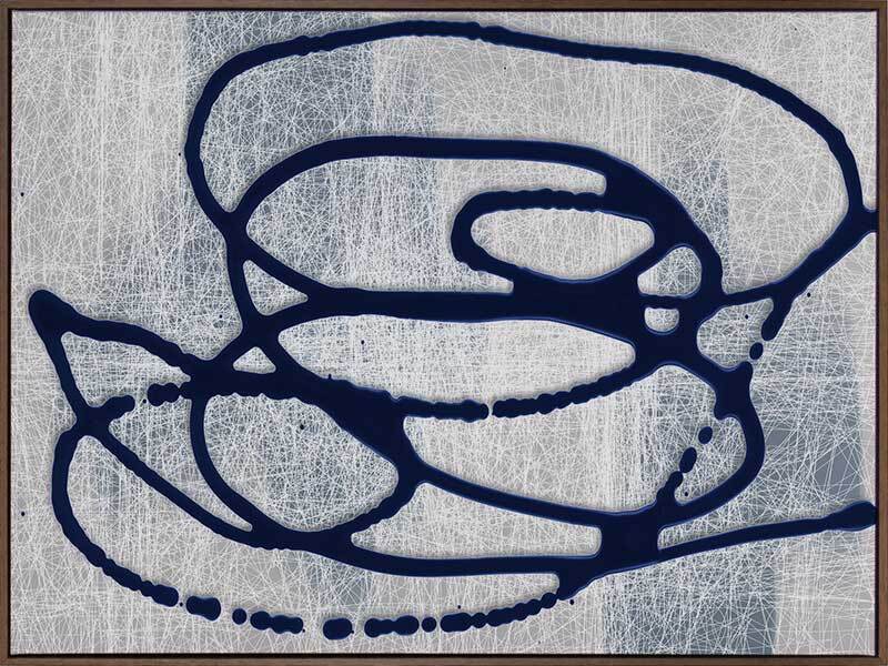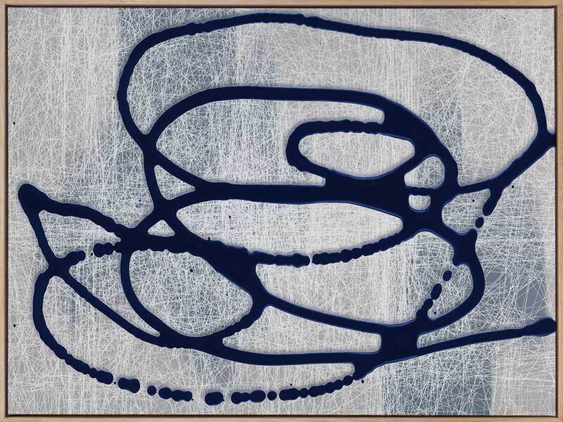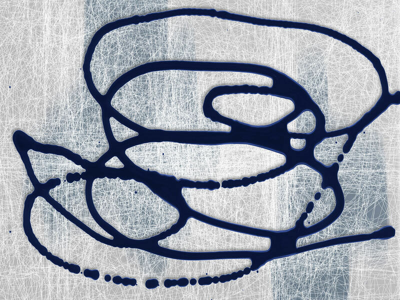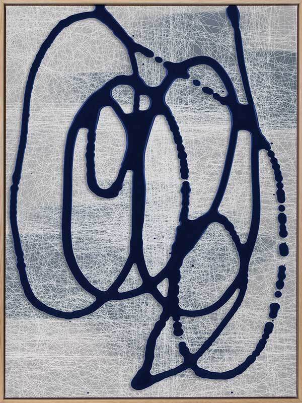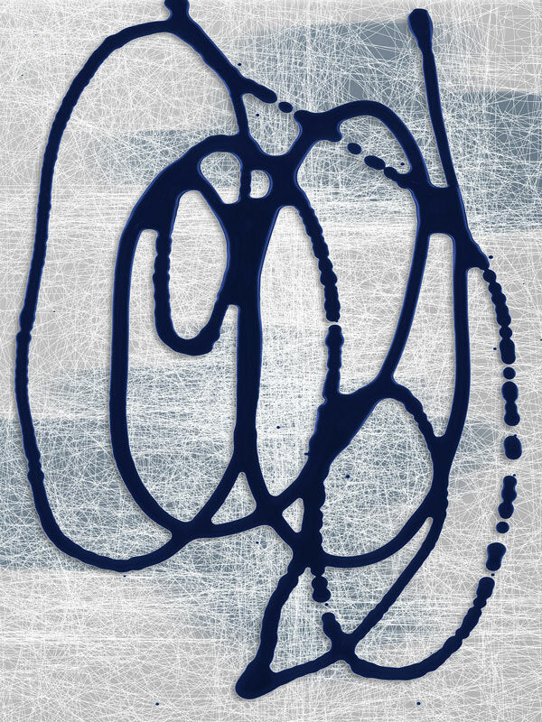 Disparity II Canvas Art Print: A texture-rich, abstract artwork that features navy blue lines overlaying a white and blue scibbled background. Pairs with Disparity I. 2019 AUTUMN/WINTER COLLECTION: ODYSSEY