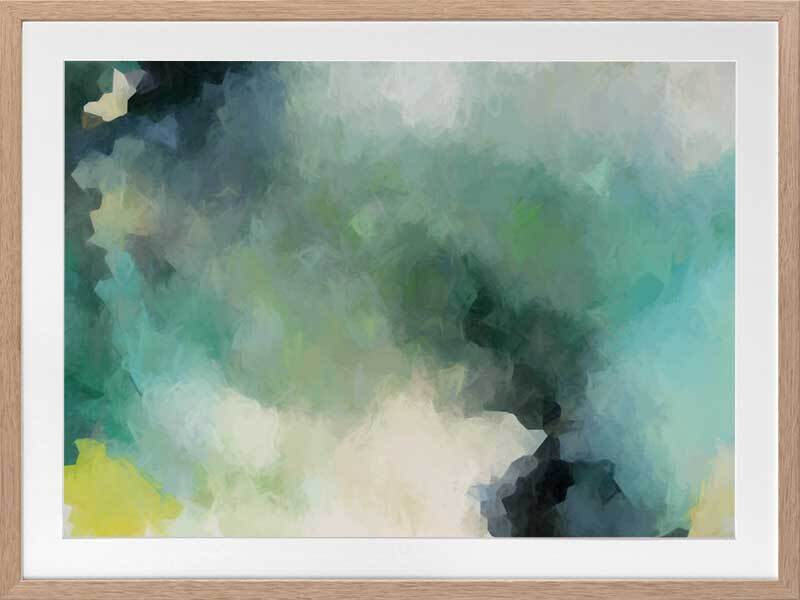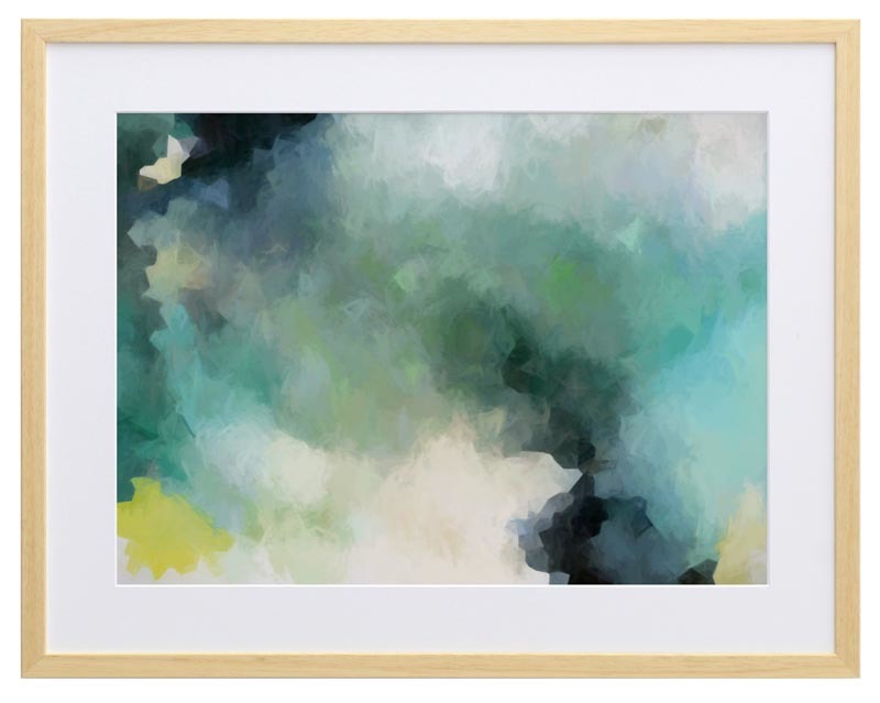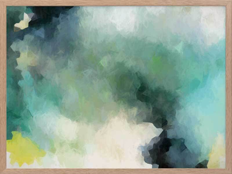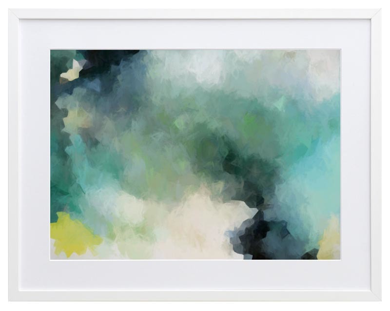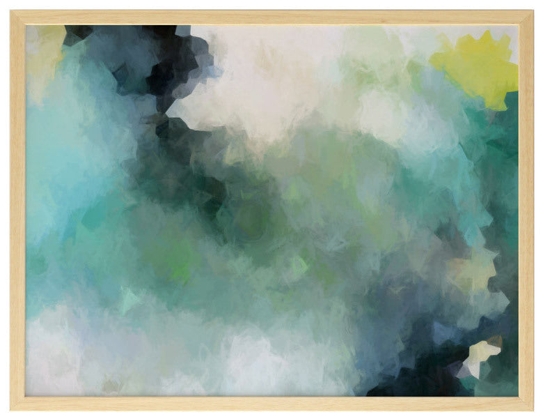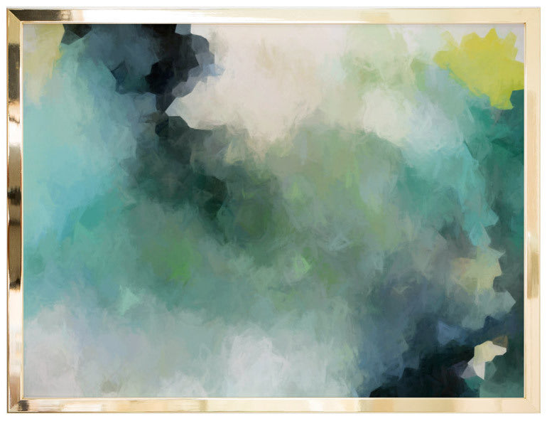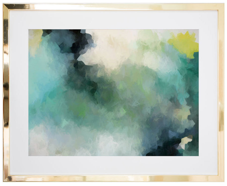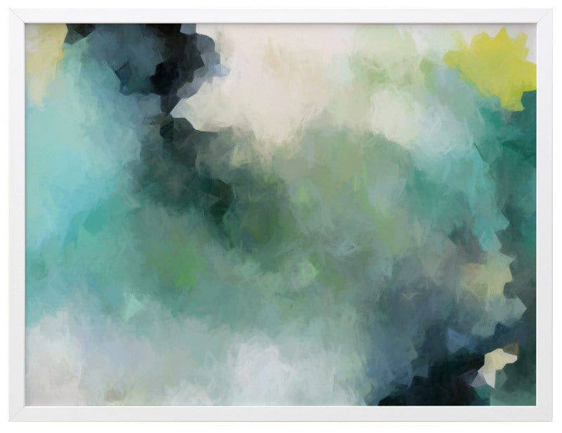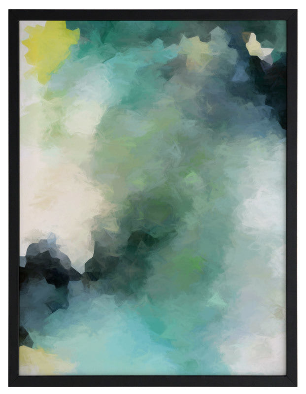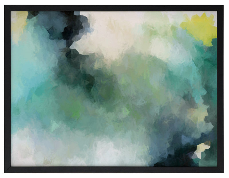 Down by the Mangroves Framed - Abstract painting of geometric shapes in yellow and blue and green tones. 2016 WINTER COLLECTION: INSPIRE