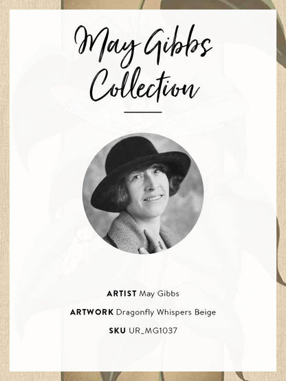 Dragonfly Whispers Beige Unframed Art Print - Delicate and full of charm, this wall art from the Urban Road X May Gibbs Artwork Collection brings the playful magic of the Boronia Babies to life. Tucked among the soft, curling leaves, the tiny Boronia Babies enjoy an afternoon of adventure with their dragonfly companion.