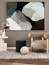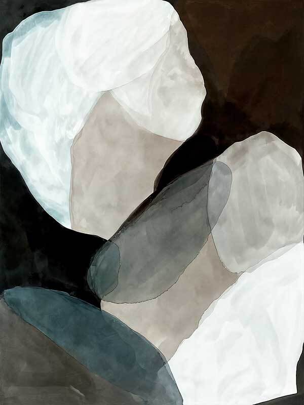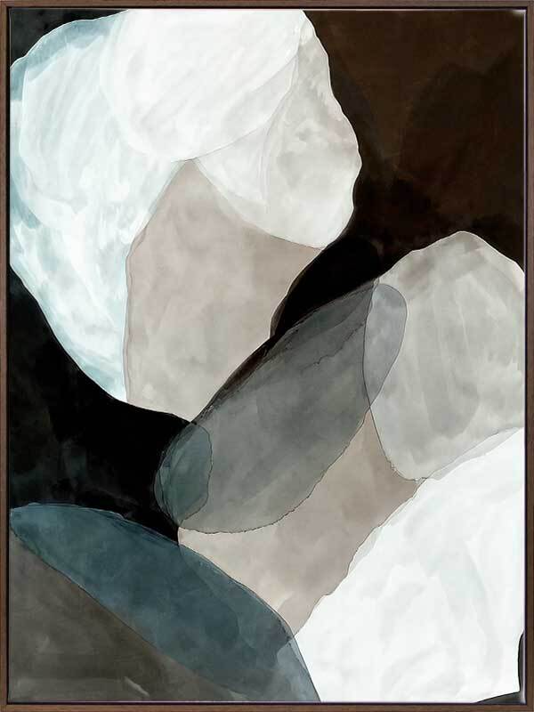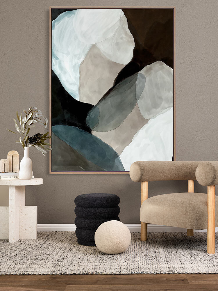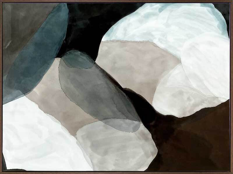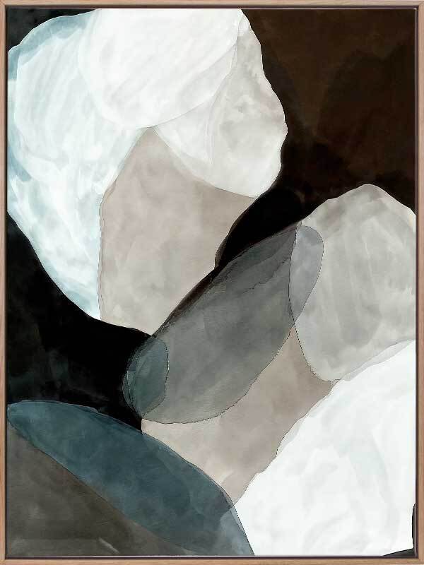 Dream Fragments I Canvas Art Print - This abstract artwork, a symphony of watercolour brush strokes, brings a touch of mid-century modern elegance to any space. With its harmonious blend of brown, blue, and neutral hues, and fluid, organic shapes, this wall art evokes a fresh, calming vibe - perfect for enhancing any living room or bedroom.