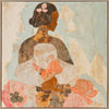Dreaming of Marigolds Canvas Art Print - Like a dream bursting with marigold flowers, this soft, feminine art print makes a calm, yet bold impact with transparent layers that fall atop each other like a collage. Neutral shades of brown and beige balance soft hues of pink, orange and blue, making this floral artwork easy to incorporate into any interior style, especially bohemian spaces.