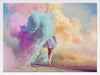 Dreams Do Come True Framed Art Print - Step into a dreamscape with this stunning photographic artwork depicting a woman enveloped in a kaleidoscope of pastel-coloured clouds, blending shades of pink, blue, and yellow. Bringing a whimsical feel to your space, this photographic wall art channels a vibrant spirit, perfect for energising any living room or bedroom.