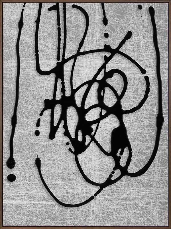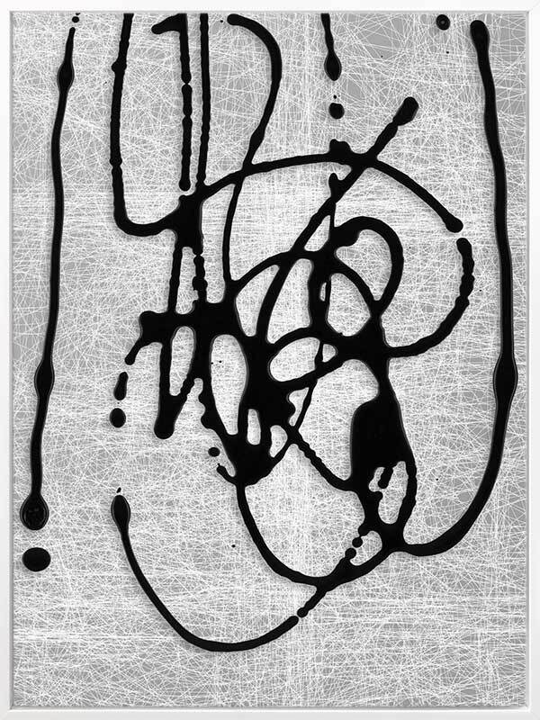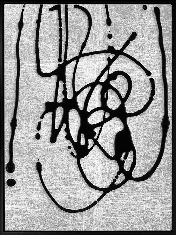 Duality II Canvas Art Print: A texture-rich, abstract artwork that features black lines overlaying a grey and white scibbled background. Pairs with Duality I. 2019 AUTUMN/WINTER COLLECTION: ODYSSEY