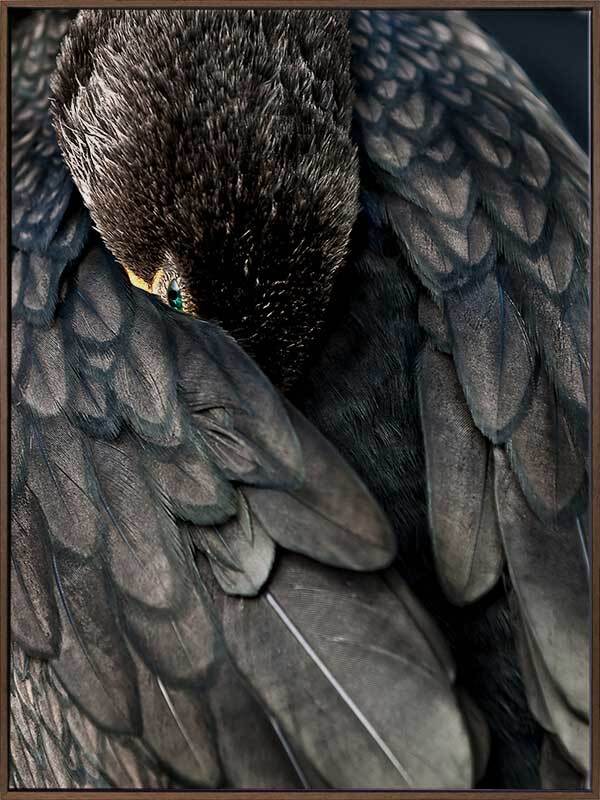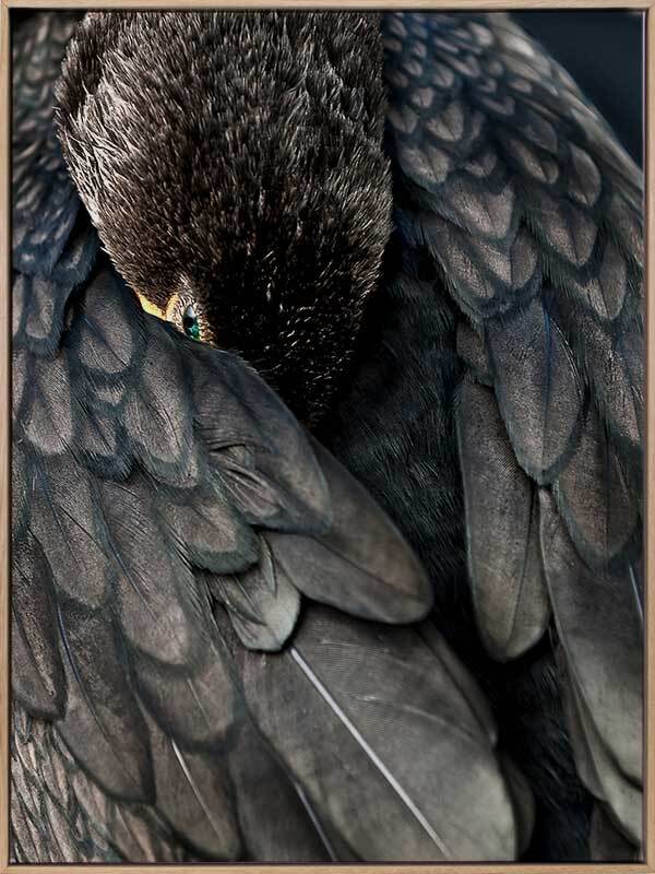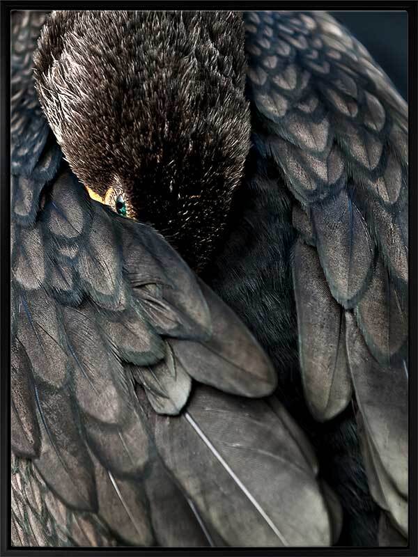 Duck Down Canvas Art Print: A close-up photographic image of a duck hiding under its wing. 2018 AUTUMN/WINTER COLLECTION: CONTINUUM