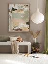 Earth Echoes I Canvas Art Print - A textured dance of blush, ivory, and muted green hues defines this abstract wall art, balancing confident strokes with gentle pastel calmness. Ideal for those seeking modern art that effortlessly blends sophistication with relaxed comfort, this artwork brings soft glamour to your space.