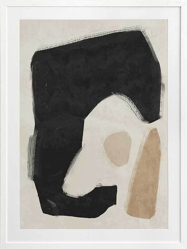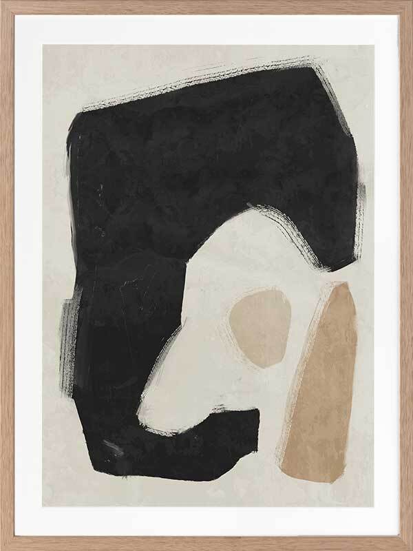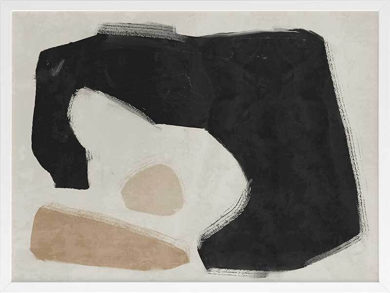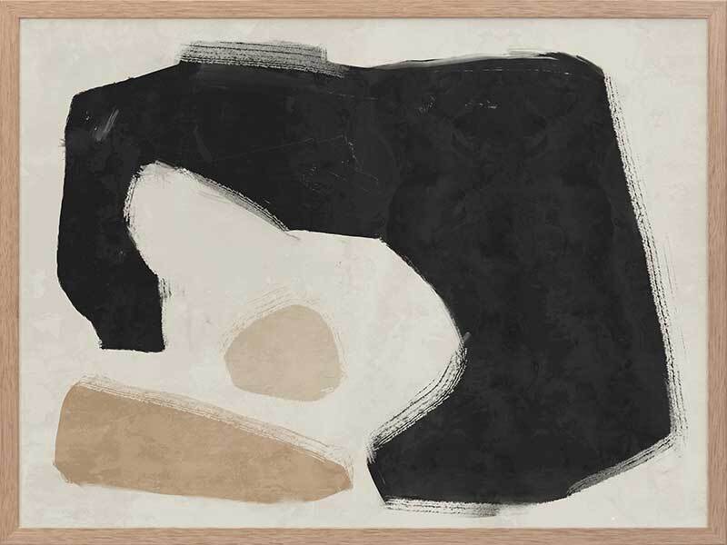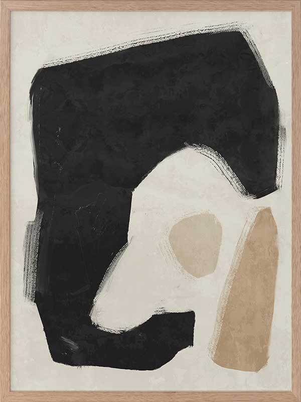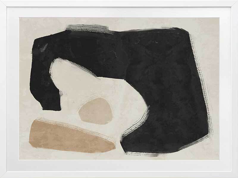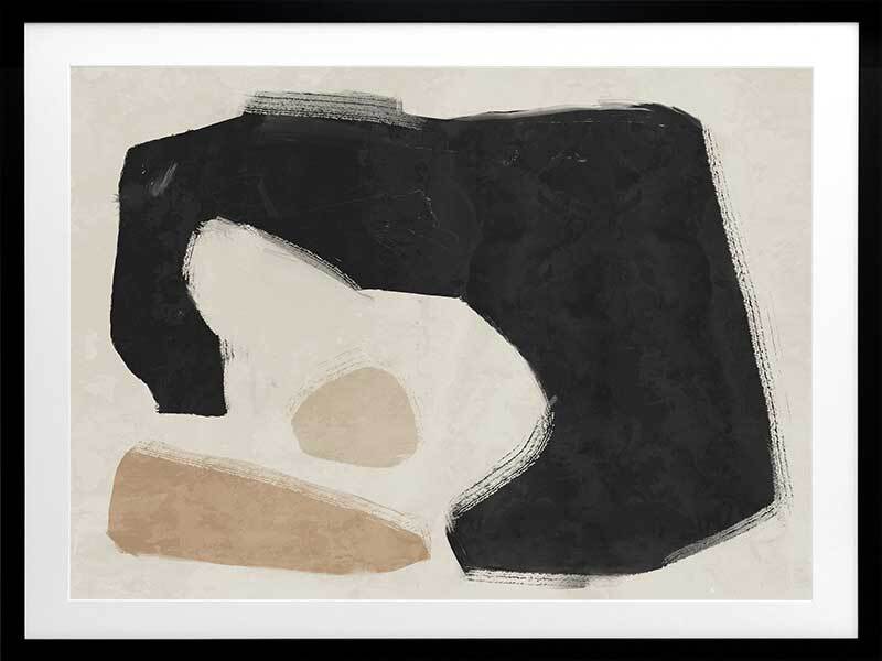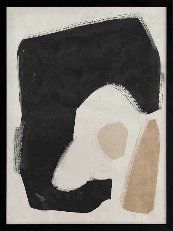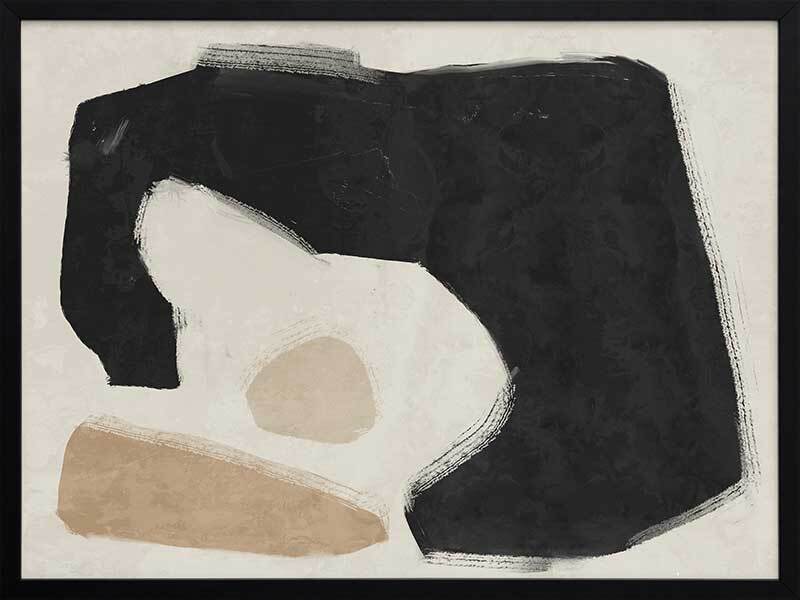 Easy Does It Black Framed Art Print - This abstract artwork makes a unique, yet subtle statement in your space with interesting shapes and a minimalistic colour palette of black, beige, and sand.