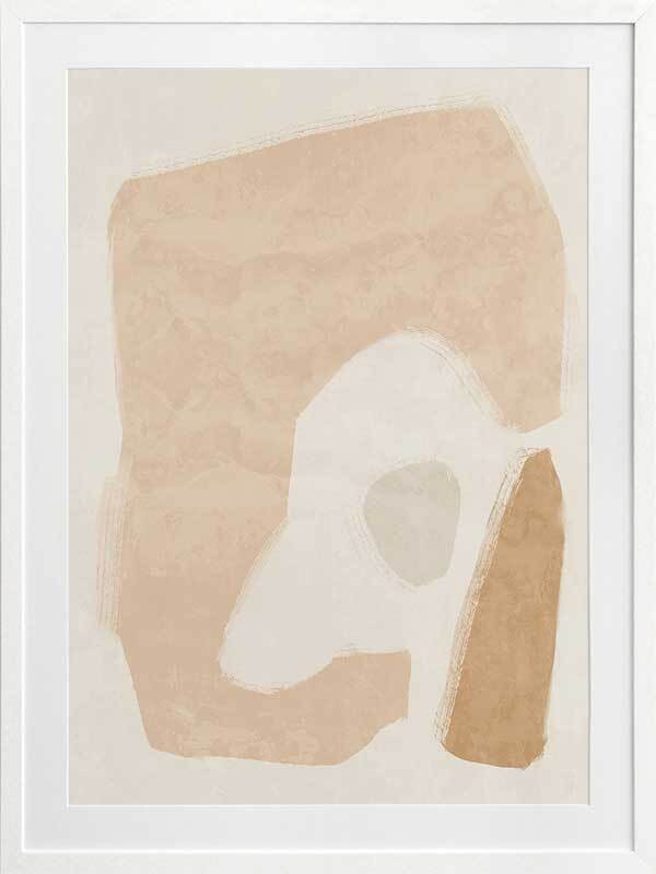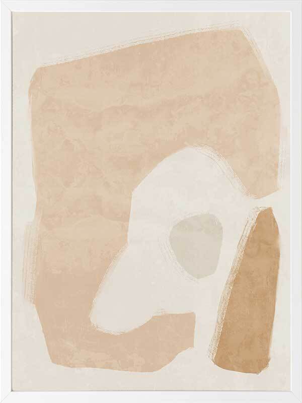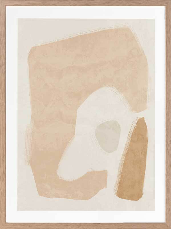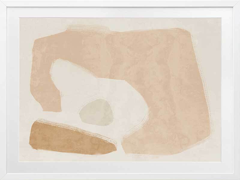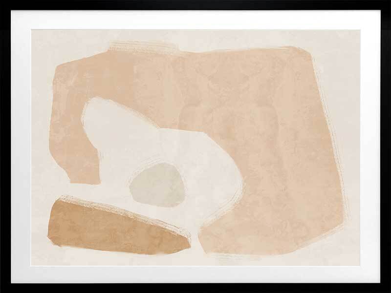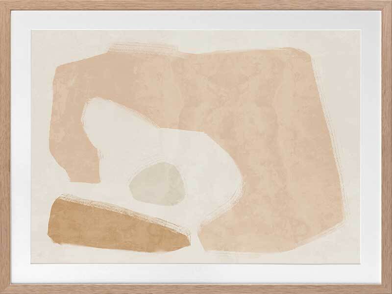 Easy Does It Neutral Framed Art Print - This abstract artwork makes a unique, yet subtle statement in your space with interesting shapes and a minimalistic colour palette of blush-toned beige, warm beige, and sand.