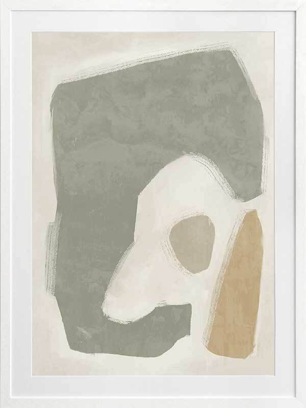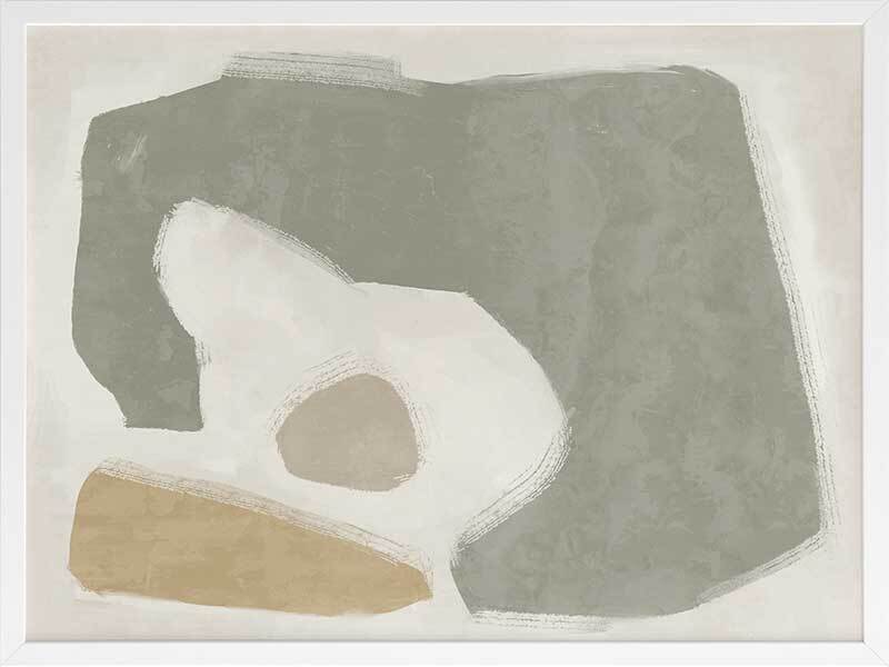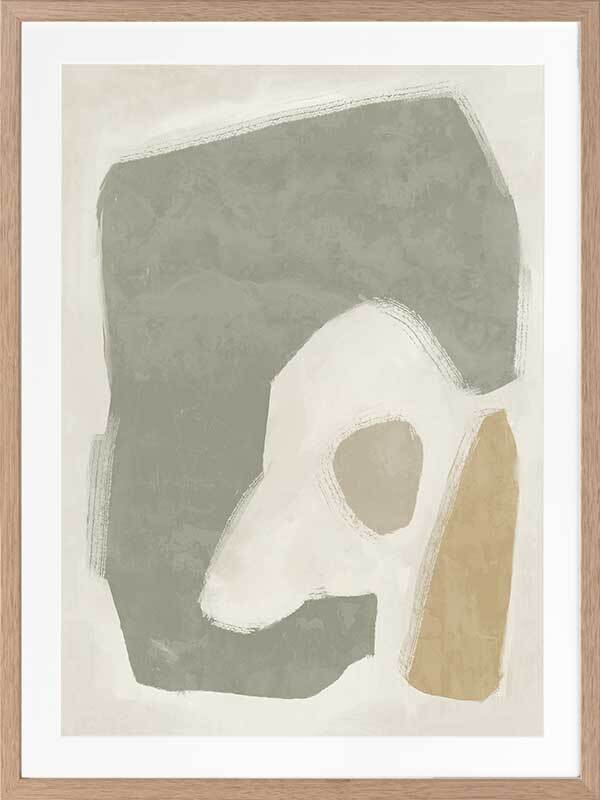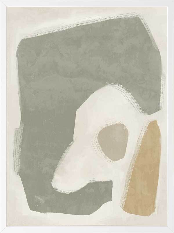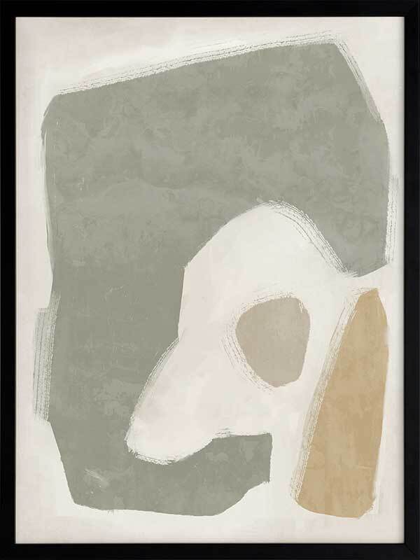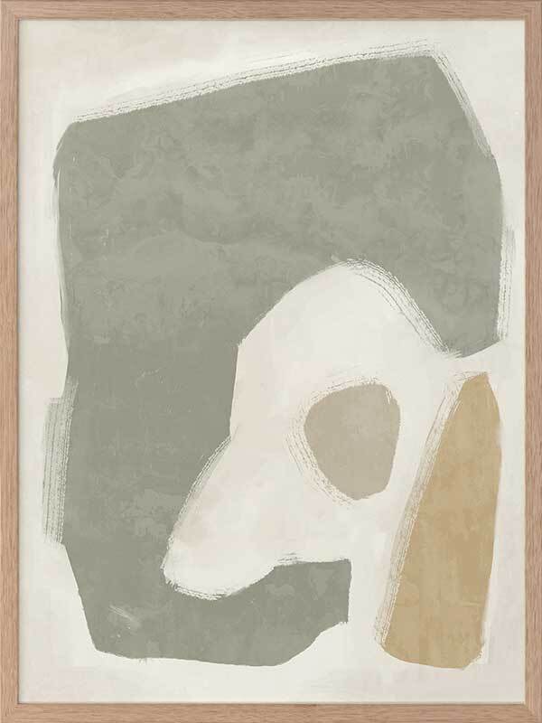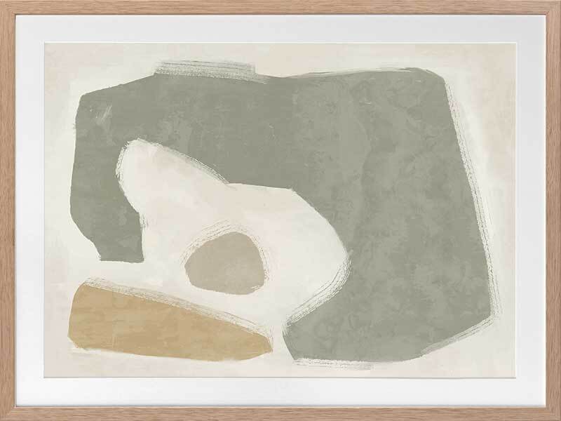 Easy Does It Sage Green Framed Art Print - This abstract artwork makes a unique, yet subtle statement in your space with interesting shapes and a minimalistic colour palette of sage green, beige, and sand.