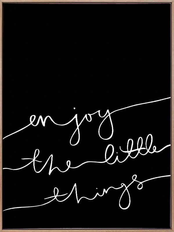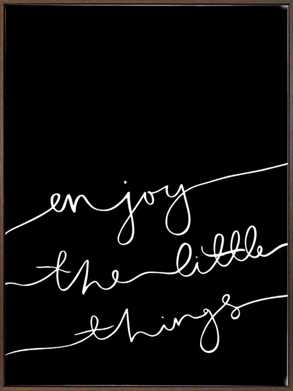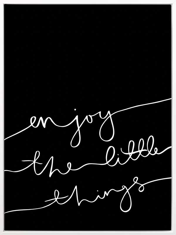 Enjoy the little things - A monochromatic typographic artwork featuring the phrase 'enjoy the little things' in cursive, white font on a background.