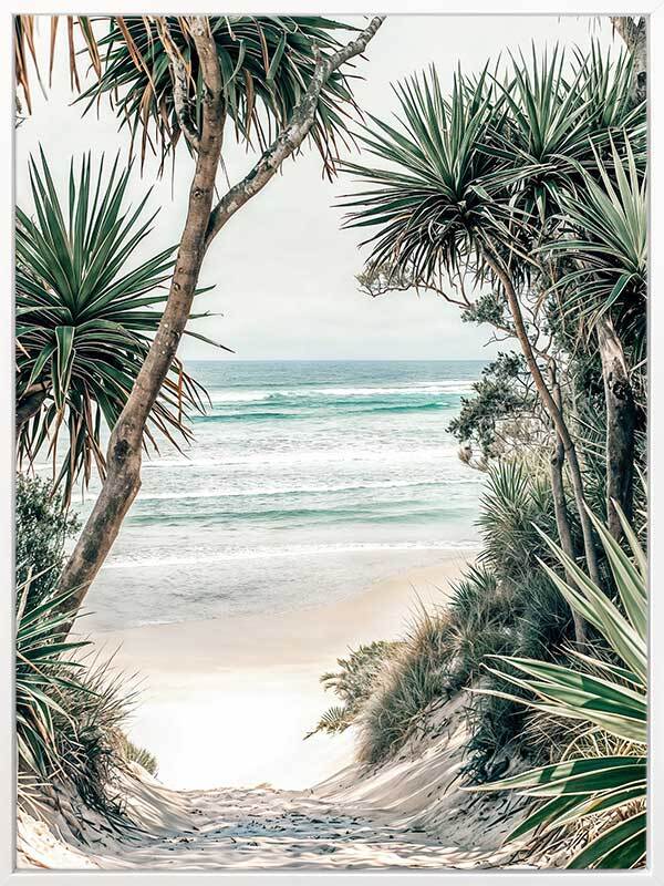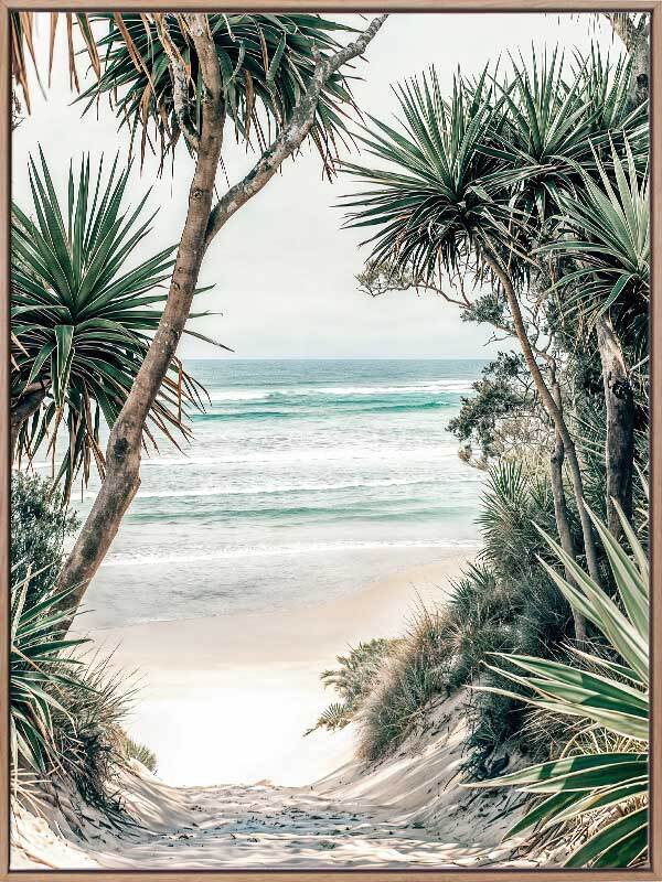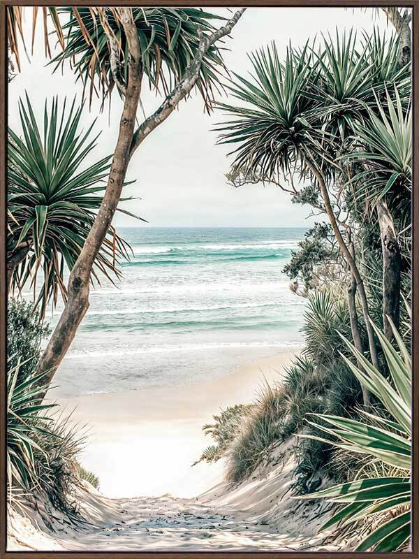 Entrance to Paradise II Canvas Art Print - Like you're stranded on a luxury tropical island, this photographic wall art depicts the beauty of the coastal tropics with bright blue waters, palm trees, and white sand. Palette includes neutrals, teal blues, and greens, making it versatile for any space.