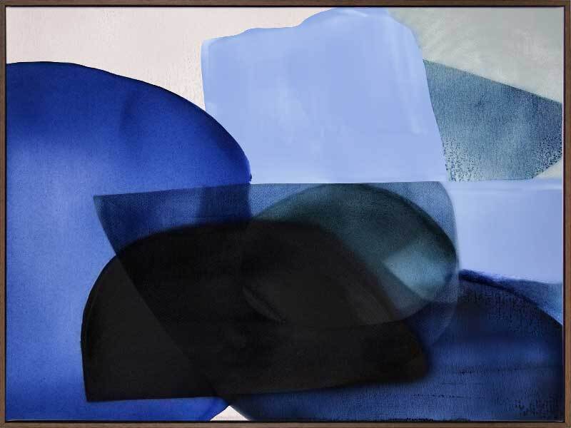 Ephemeral Depths Canvas Art Print - This bold art piece by famous Interior Designer, Darren Palmer, brings vibrant brushstrokes of tonal blue shades to life, encapsulating the fleeting and ethereal nature of the ocean and its mysteries. With its minimal, abstract design and interplay of bright and husky blues, you're invited to contemplate the profound and ever-changing depths of watery wonderlands, where vibrant blue brush strokes come alive, mirroring the ocean's diverse layers. A gorgeous pop of colour for any space, "Ephemeral Depths" works well with any interior style.