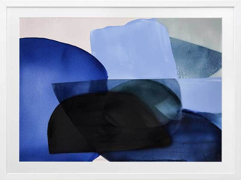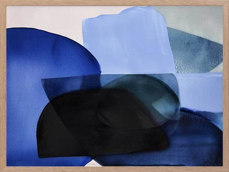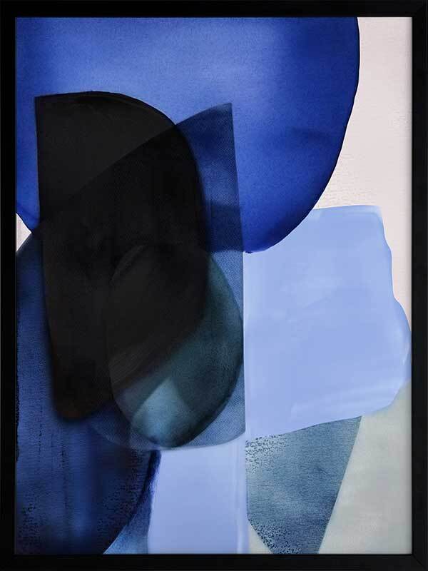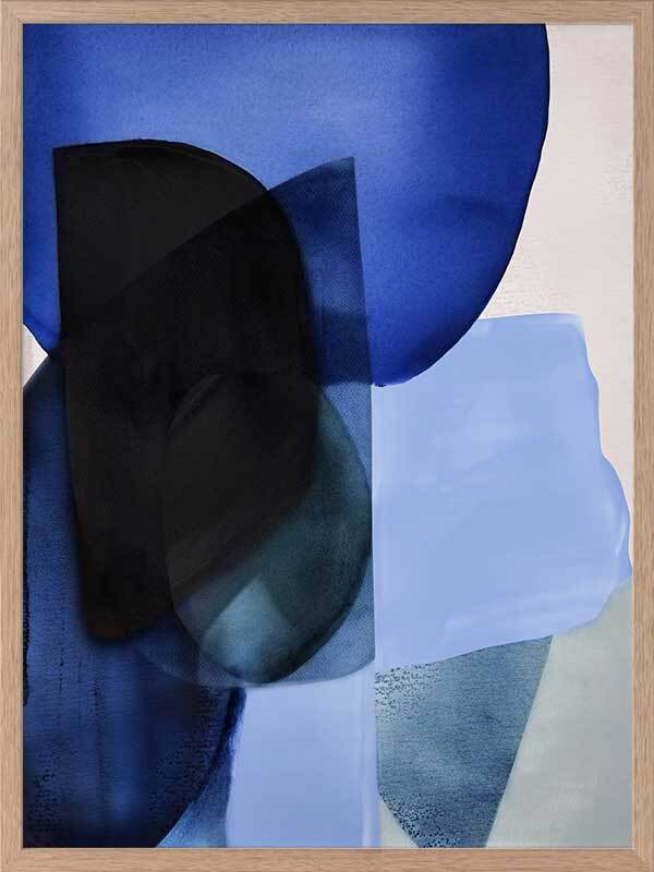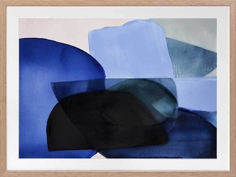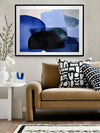 Ephemeral Depths Framed Art Print - This bold art piece by famous Interior Designer, Darren Palmer, brings vibrant brushstrokes of tonal blue shades to life, encapsulating the fleeting and ethereal nature of the ocean and its mysteries. With its minimal, abstract design and interplay of bright and husky blues, you're invited to contemplate the profound and ever-changing depths of watery wonderlands, where vibrant blue brush strokes come alive, mirroring the ocean's diverse layers. A gorgeous pop of colour for any space, "Ephemeral Depths" works well with any interior style.