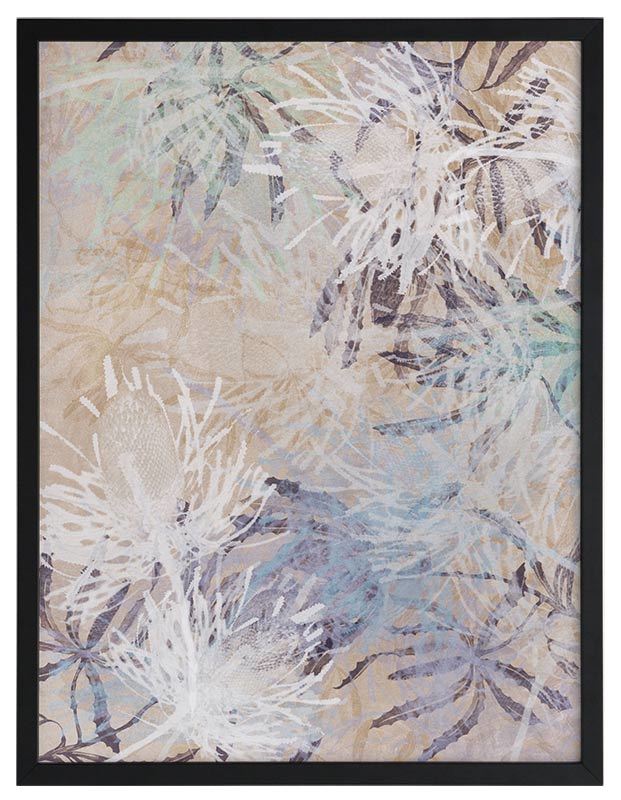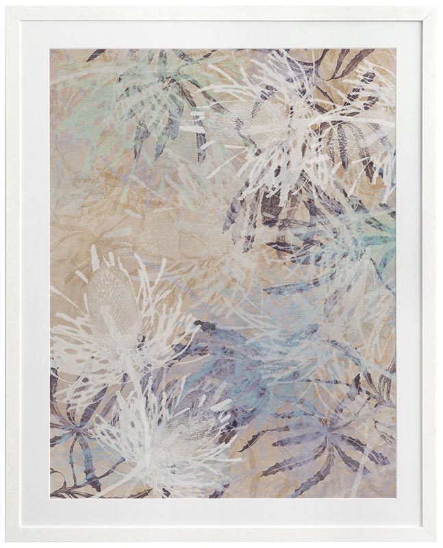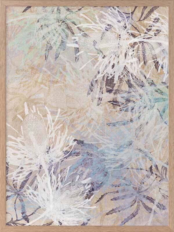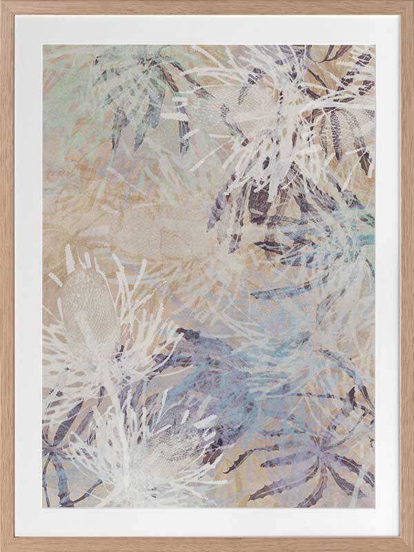 Etch II Framed Print: Overlapping Australian botanical outlines in peach, purple and burgundy shades. Pairs with Etch I. 2018 AUTUMN/WINTER COLLECTION: CONTINUUM