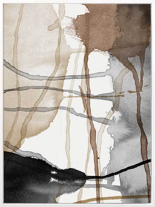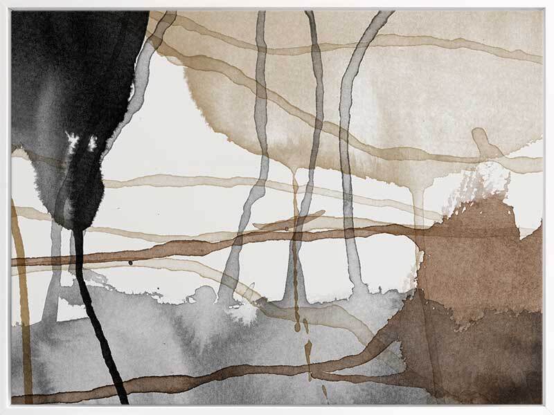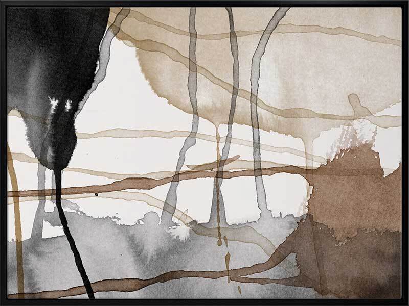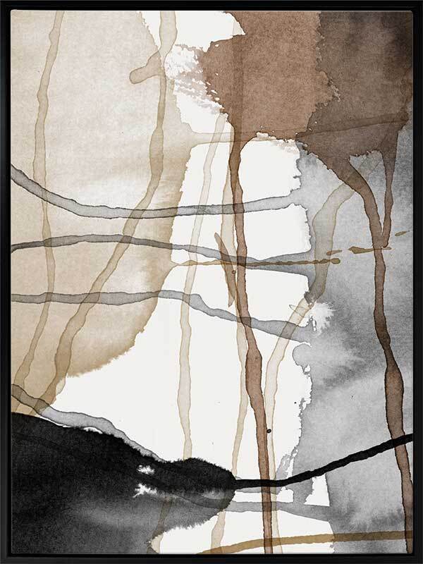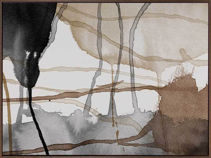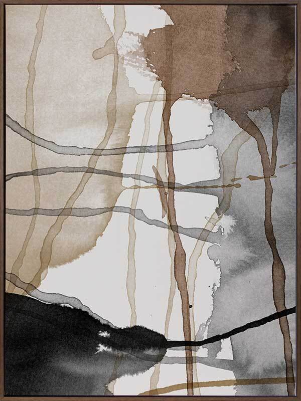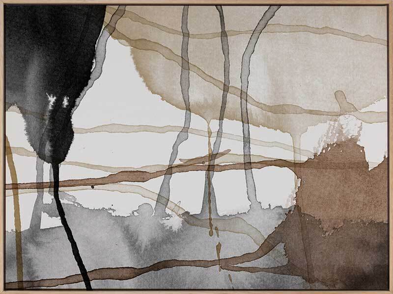 Eternal Autumn Canvas Art Print: A multi-layered abstract artwork showcasing cool toned brown and black watercolour splashes and drips. Pairs with Perpetual Autumn. 2018 AUTUMN/WINTER COLLECTION: CONTINUUM
