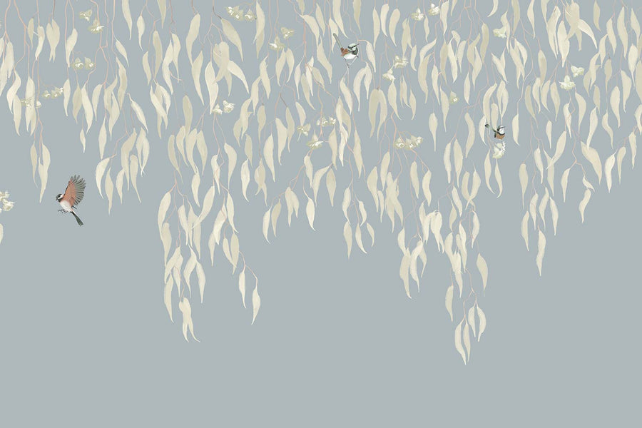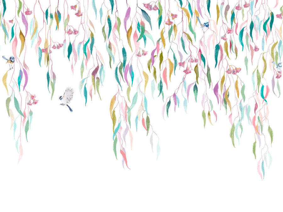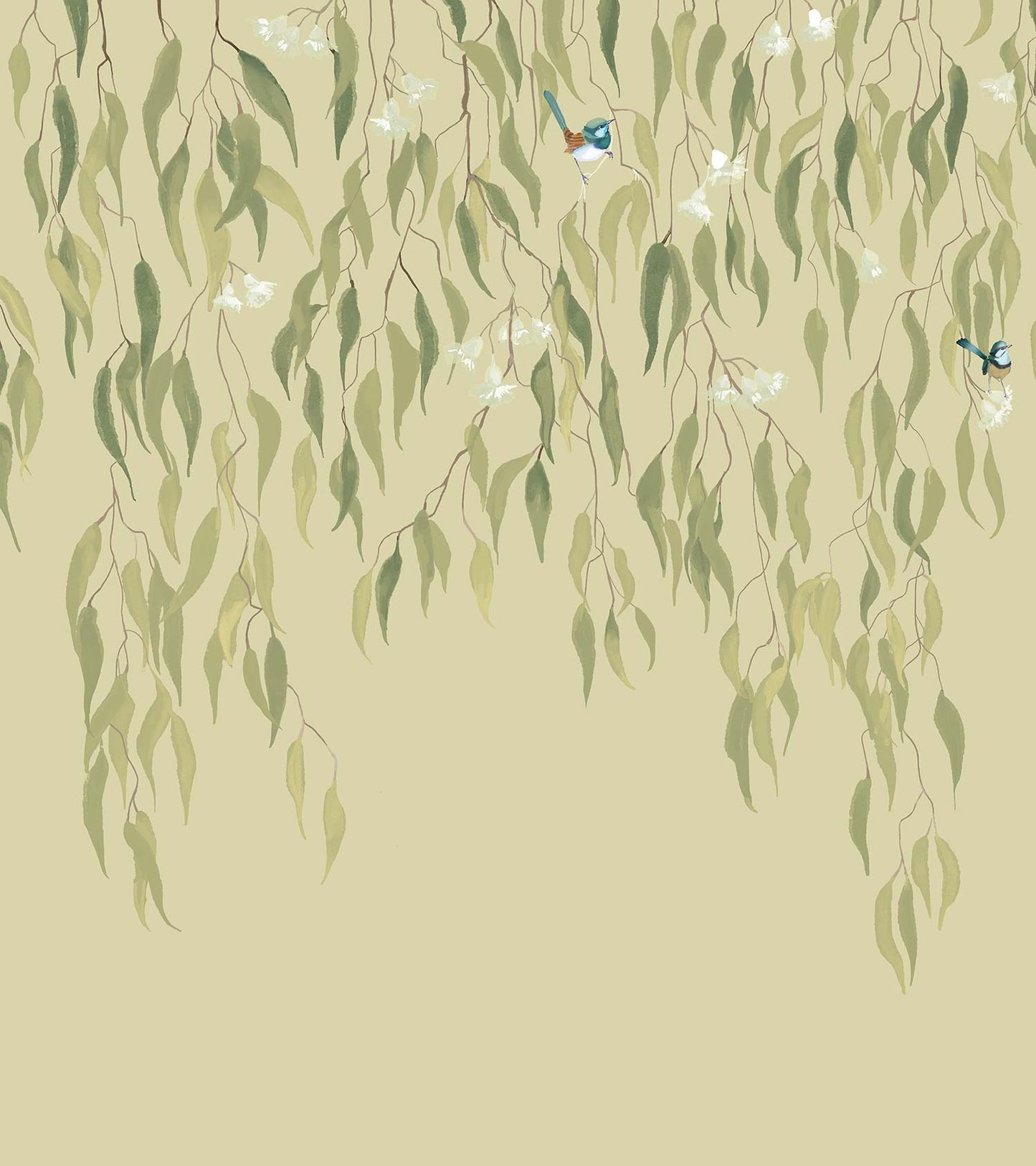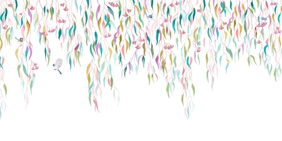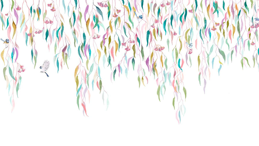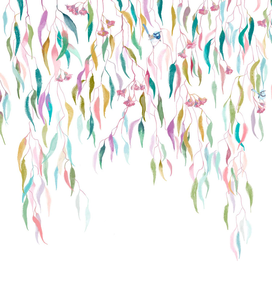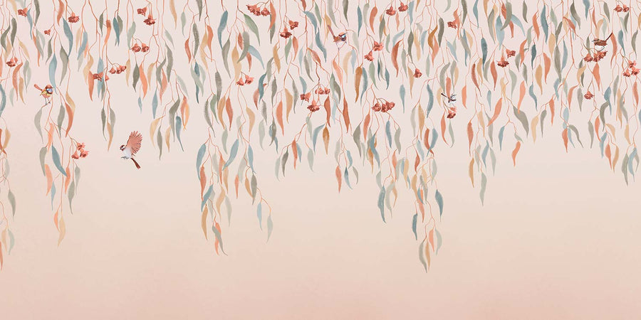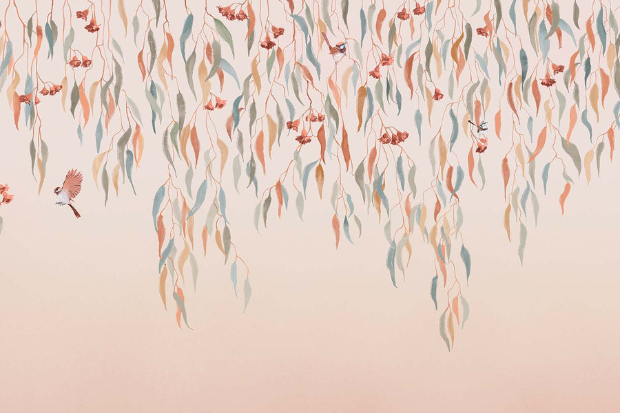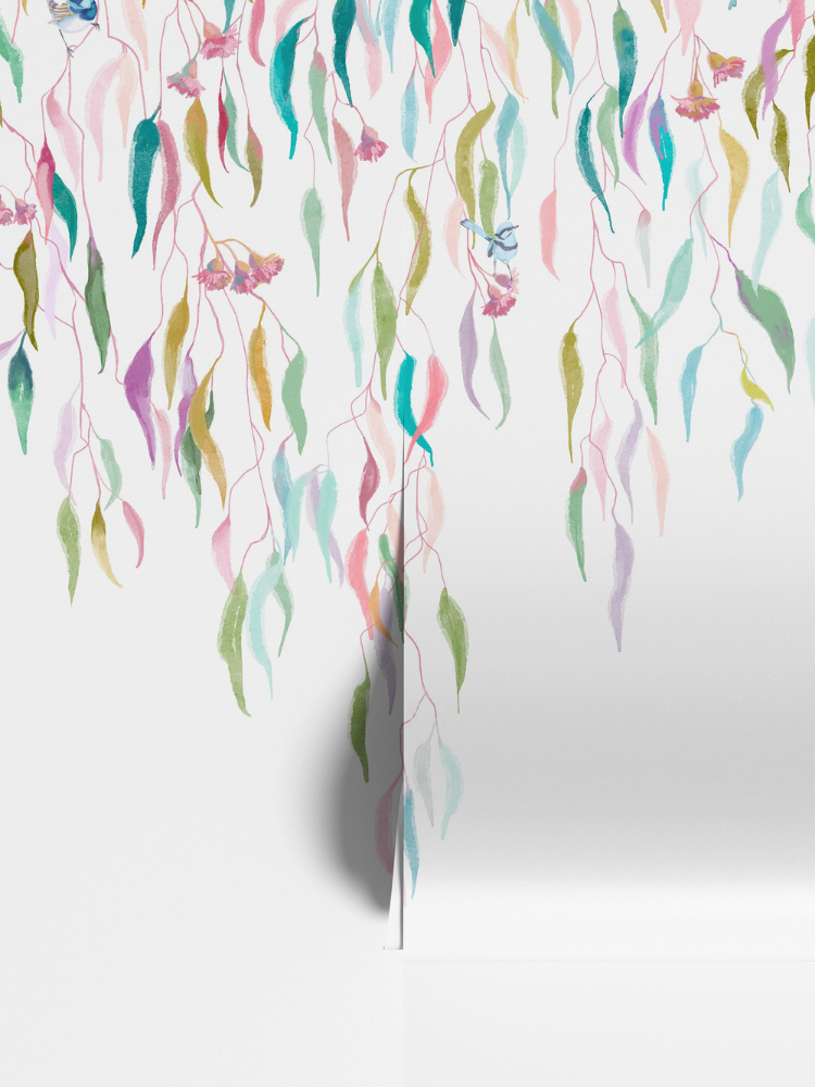Eucalytpus Waterfall Wallpaper Mural - Soft, cascading eucalyptus leaves create a tranquil, Australian bushland-inspired backdrop in this wallpaper mural.