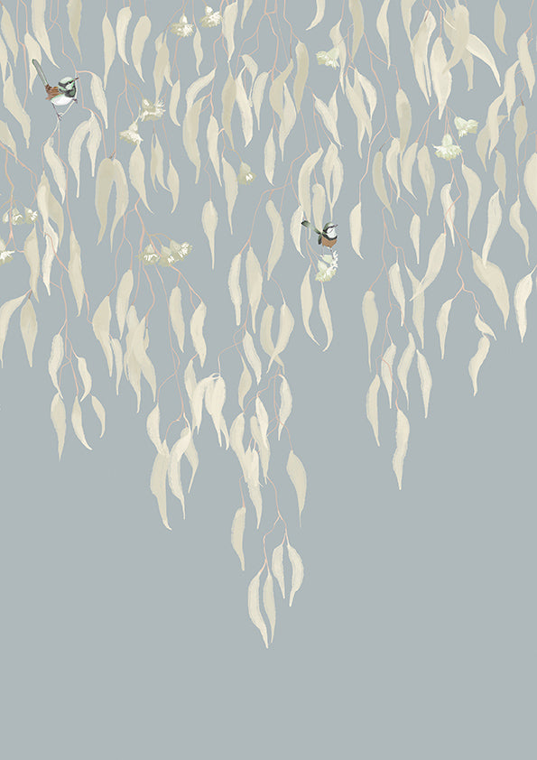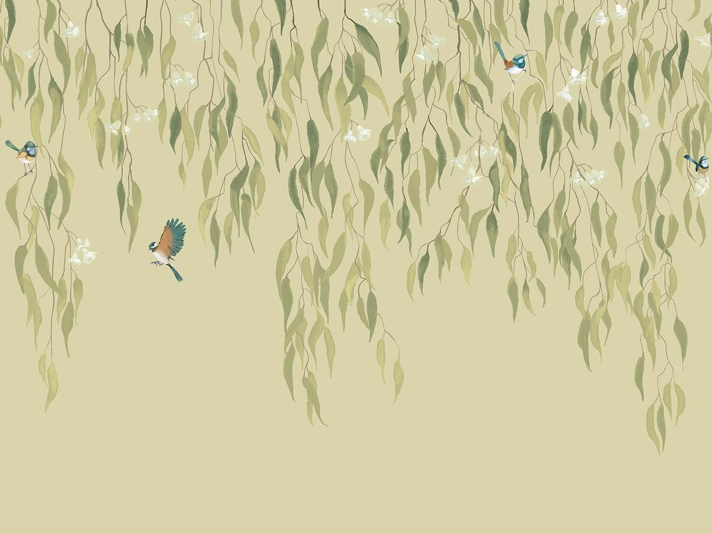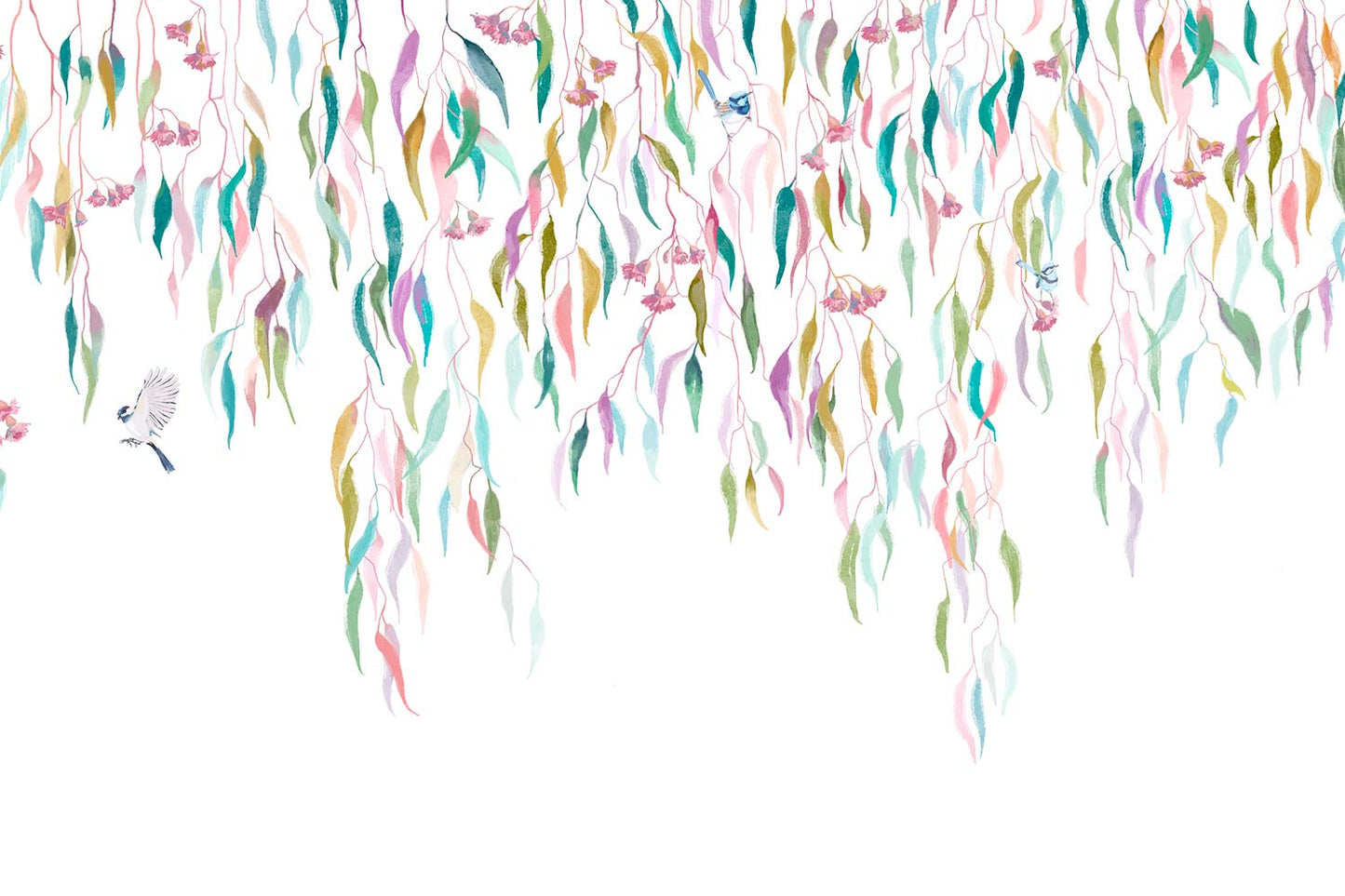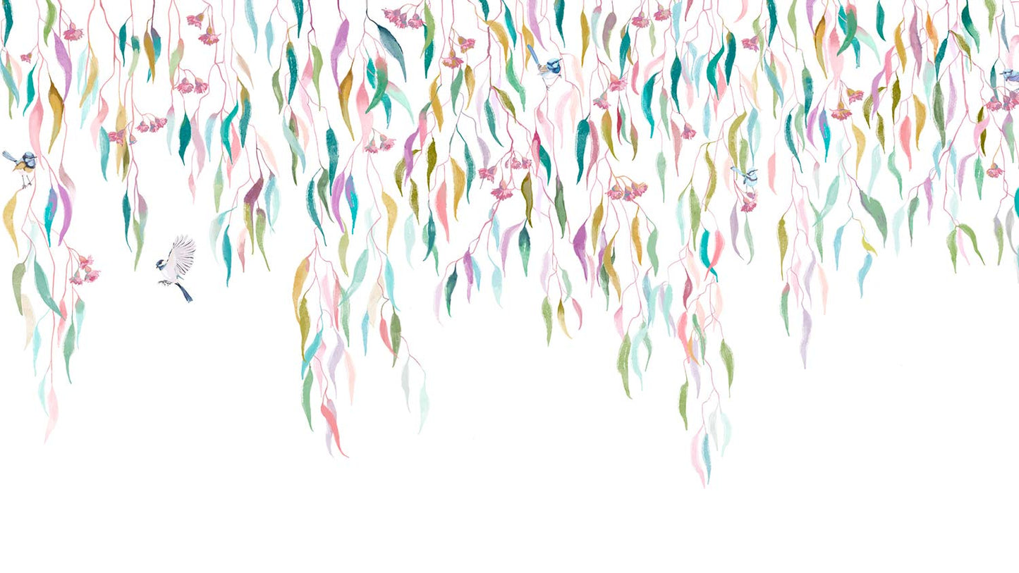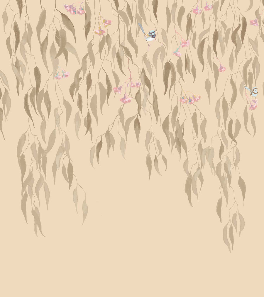 Eucalytpus Waterfall Wallpaper Mural - Soft, cascading eucalyptus leaves create a tranquil, Australian bushland-inspired backdrop in this wallpaper mural.