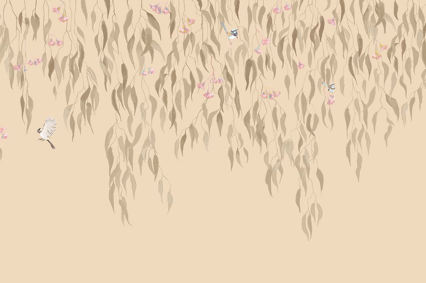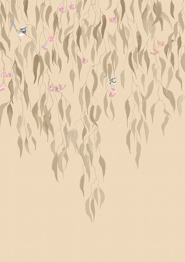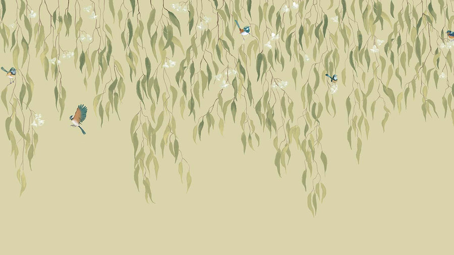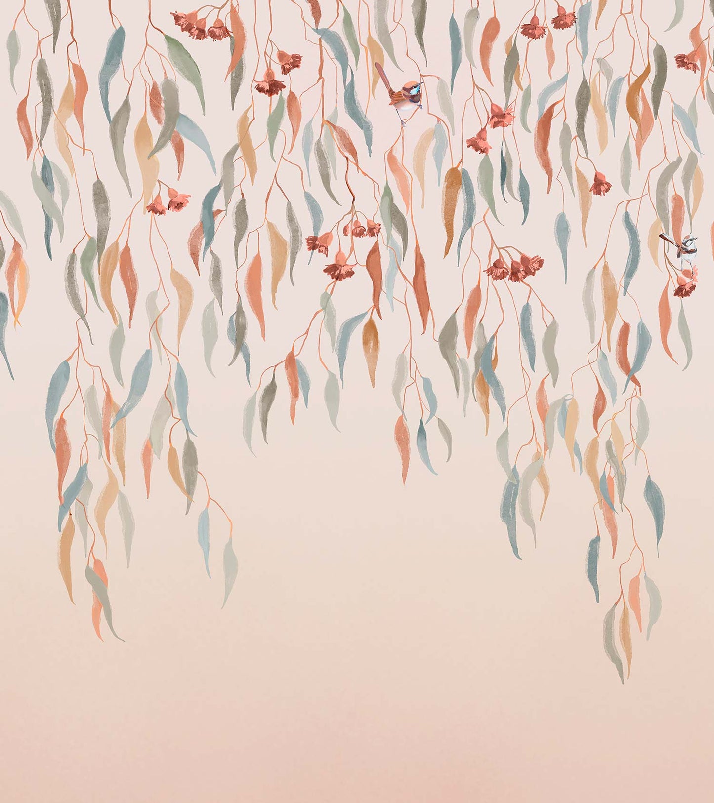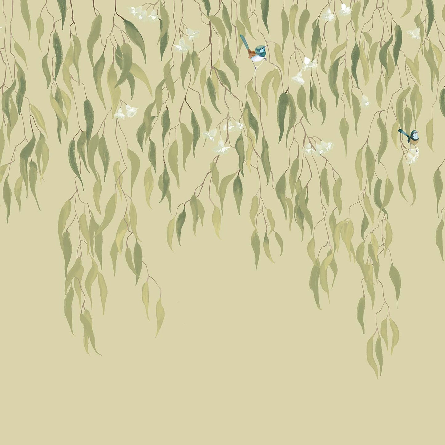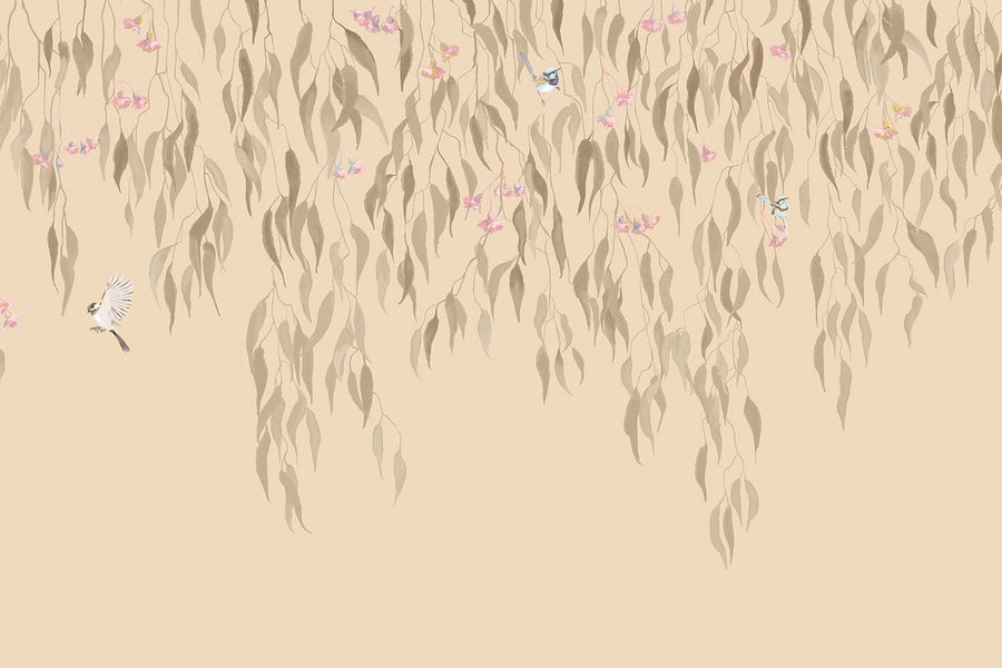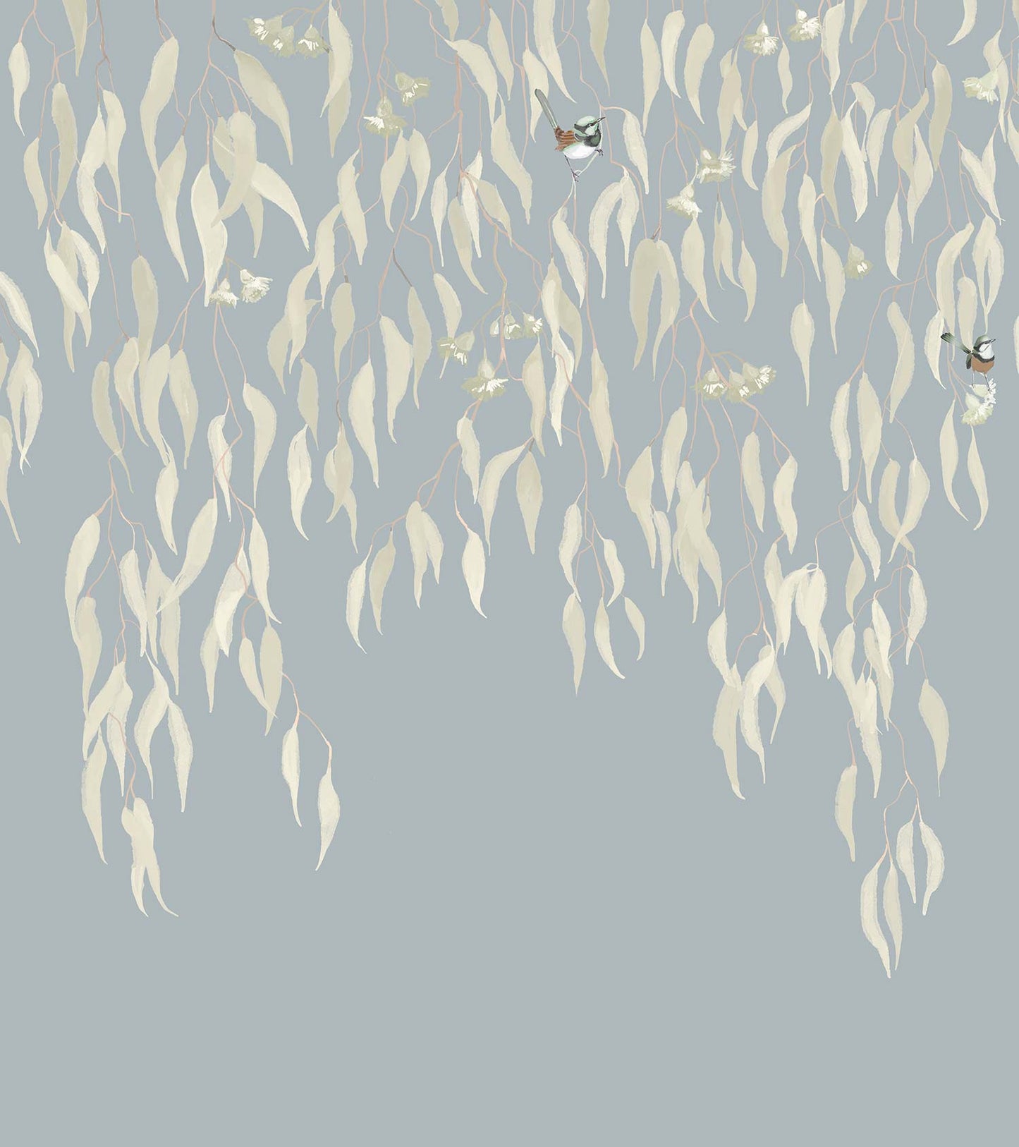 Eucalytpus Waterfall Wallpaper Mural - Soft, cascading eucalyptus leaves create a tranquil, Australian bushland-inspired backdrop in this wallpaper mural.