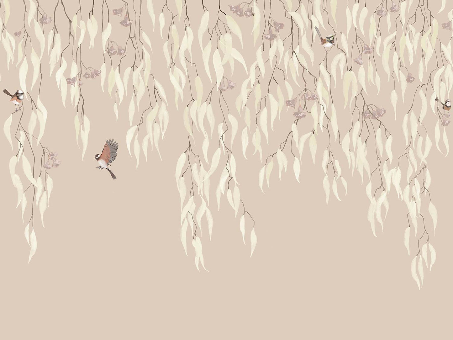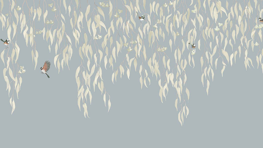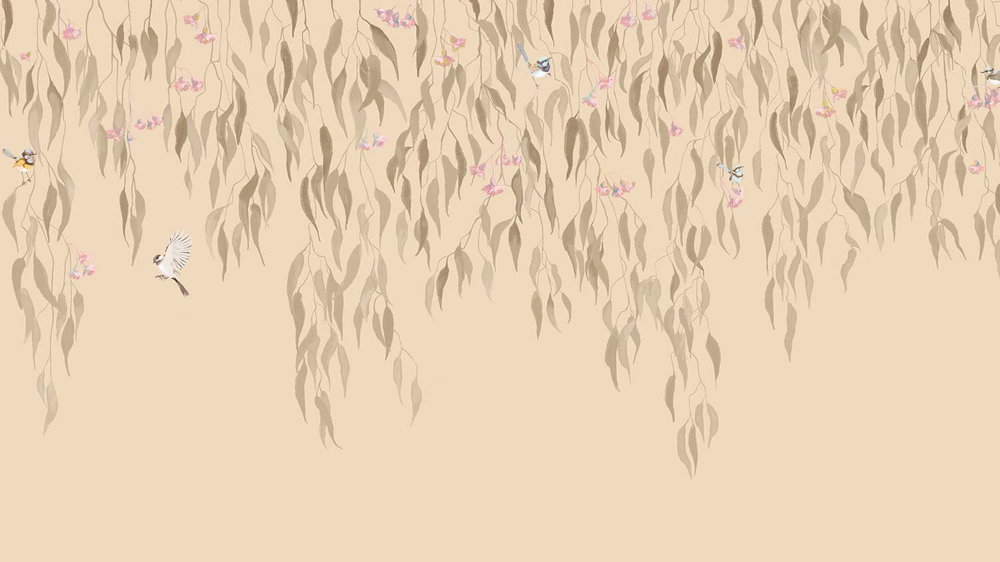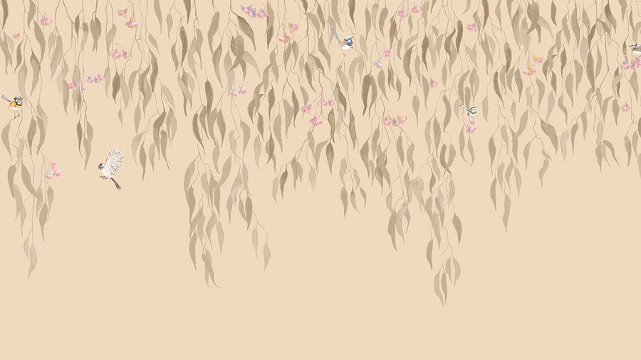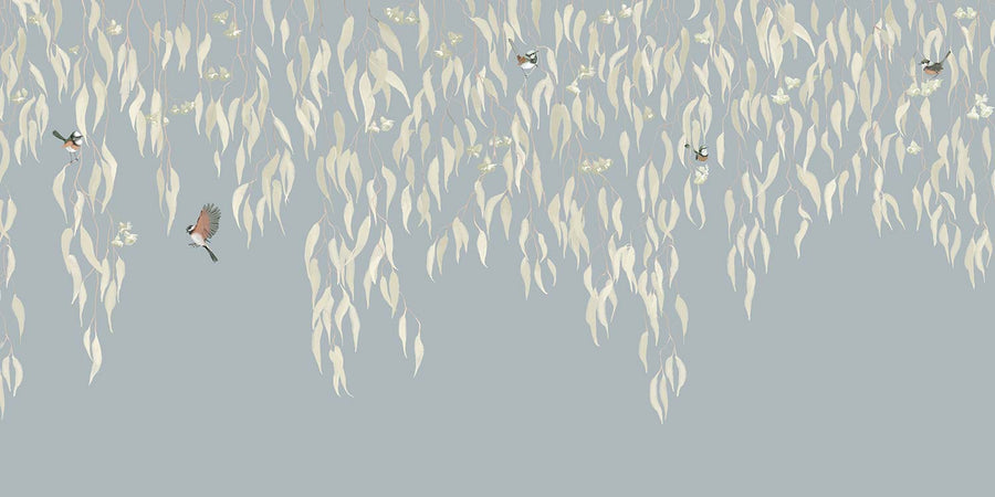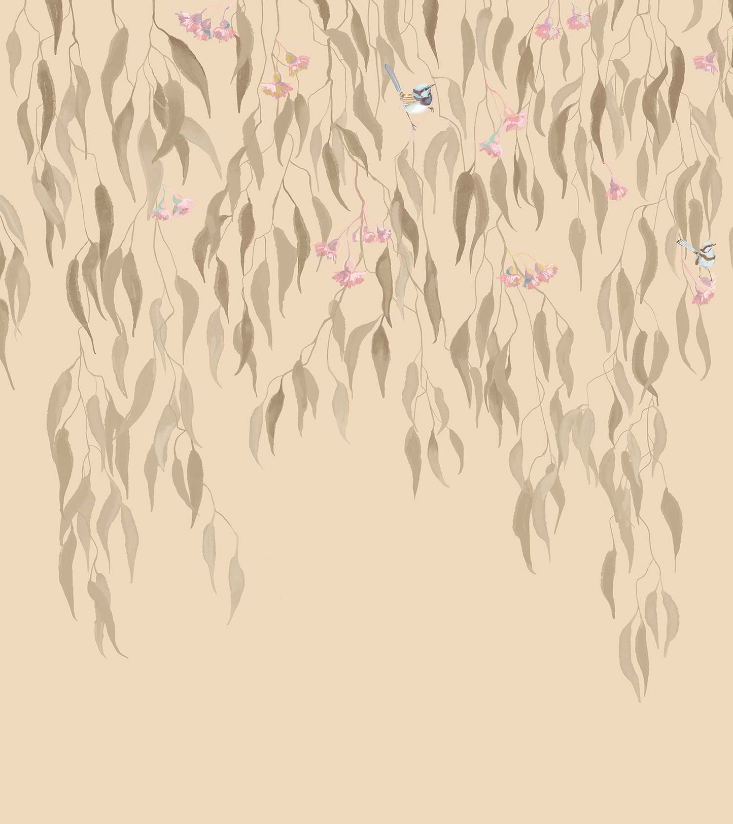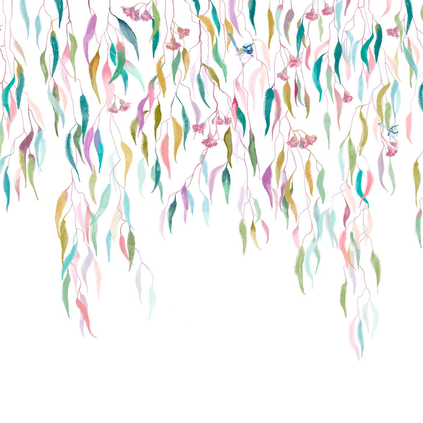 Eucalytpus Waterfall Wallpaper Mural - Soft, cascading eucalyptus leaves create a tranquil, Australian bushland-inspired backdrop in this wallpaper mural.