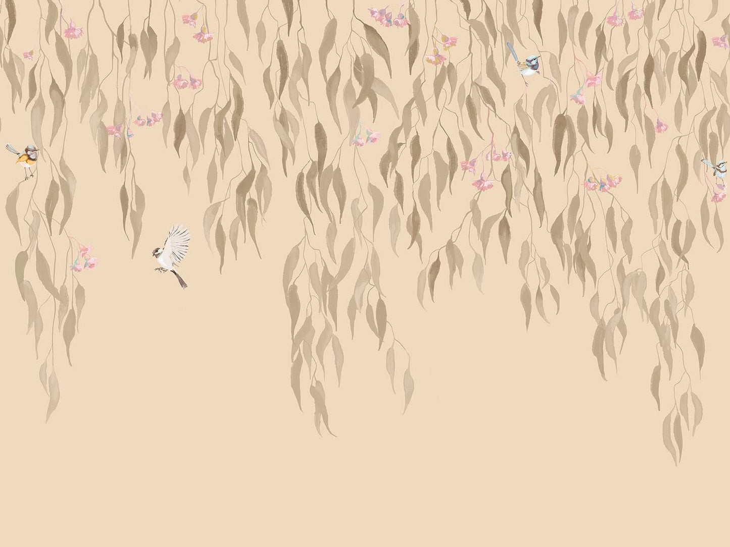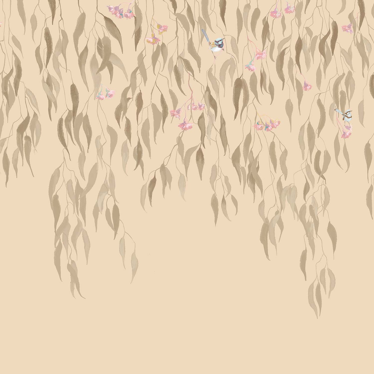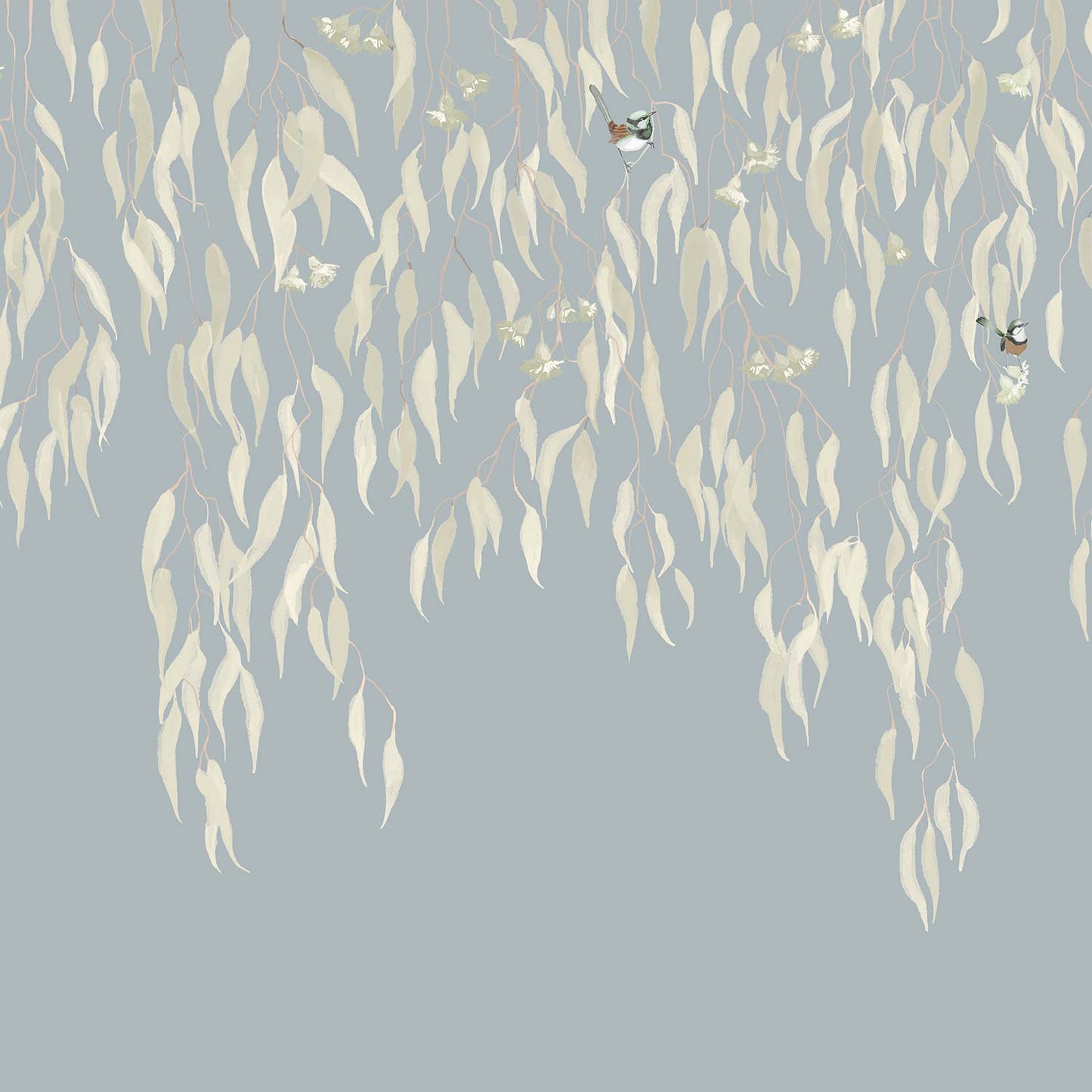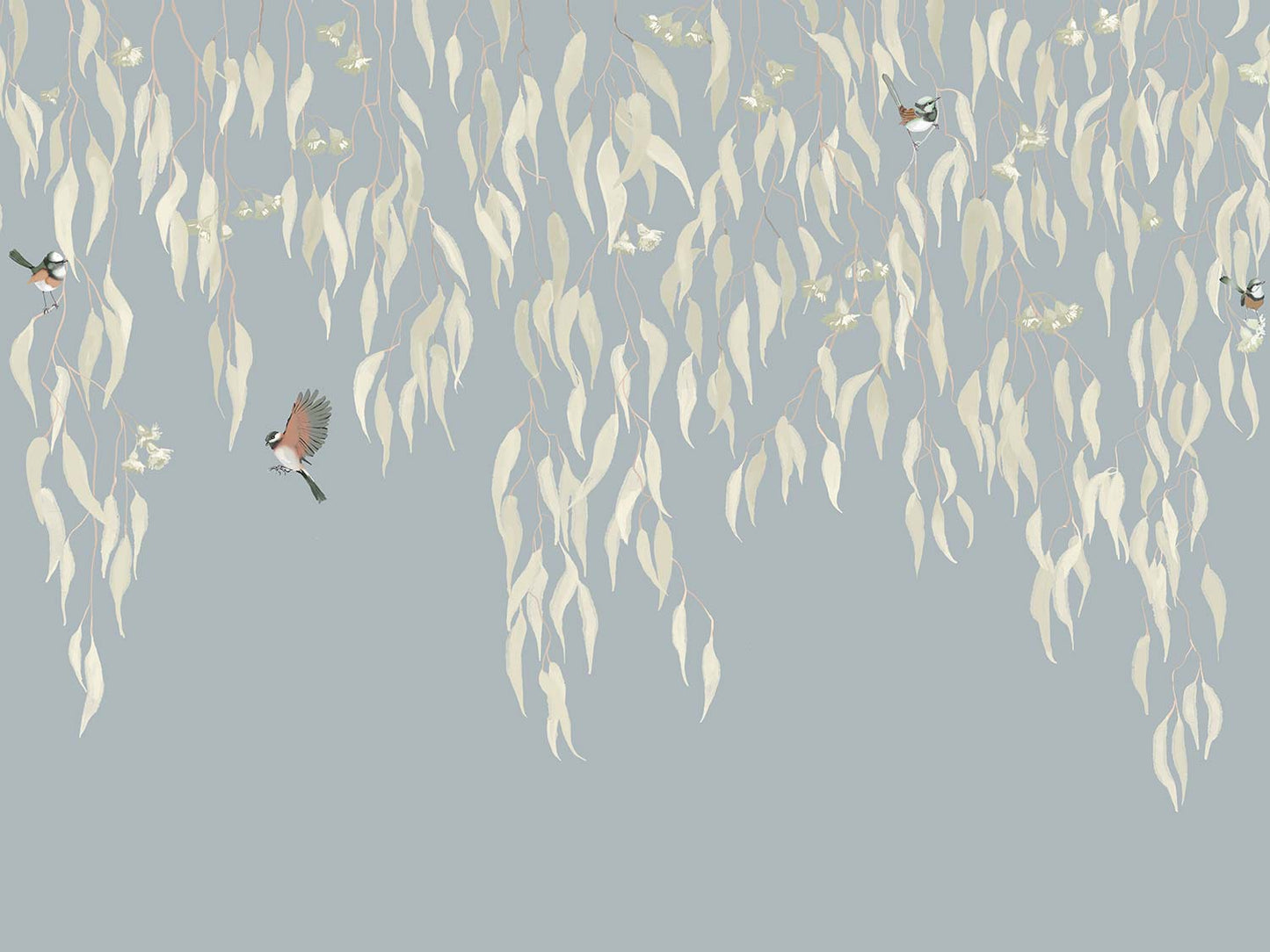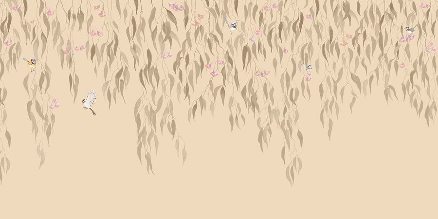 Eucalytpus Waterfall Wallpaper Mural - Soft, cascading eucalyptus leaves create a tranquil, Australian bushland-inspired backdrop in this wallpaper mural.