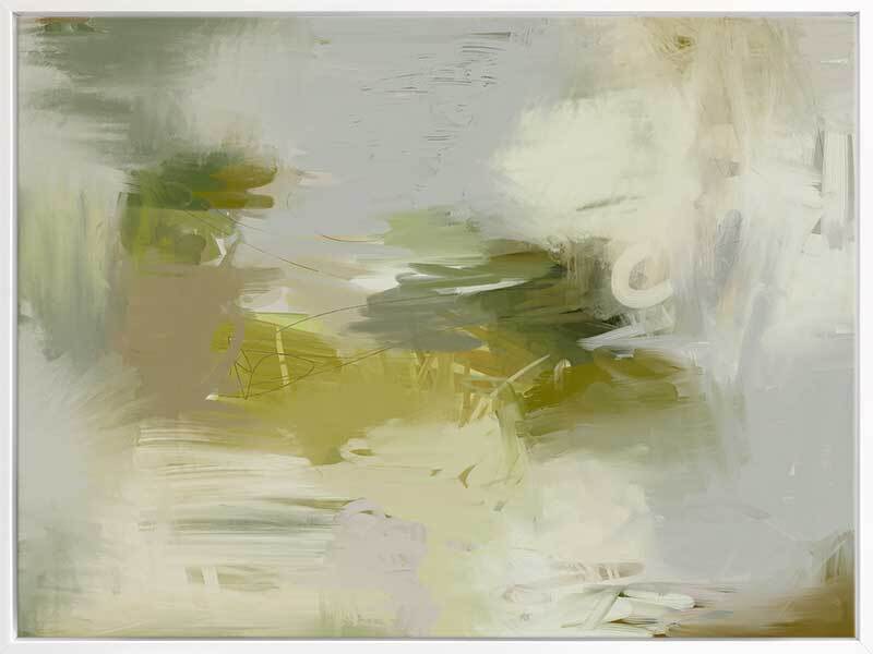 Evergreen Canvas Art Print - Featuring a unique, blurred quality using carefully blended brush strokes, this abstract artwork is the perfect pop of subtle colour to energise your space. Among soft grey and yellowy-beige tones, khaki green hues peek through.