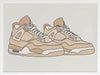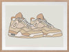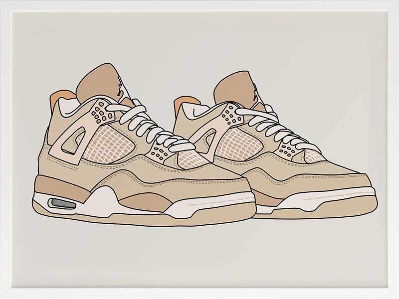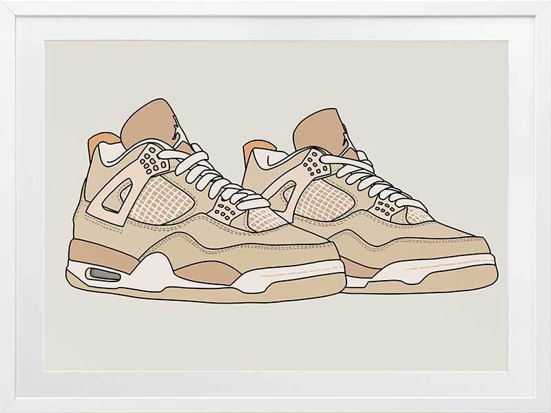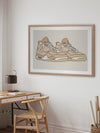 Everyday Framed Art Print - That moment when you know they'll become your everyday pair. This graphic artwork features a pair of fresh sneakers, with a minimalistic colour scheme of soft beige, pink and orange, against a stark background, bringing forward each detail and clean line.