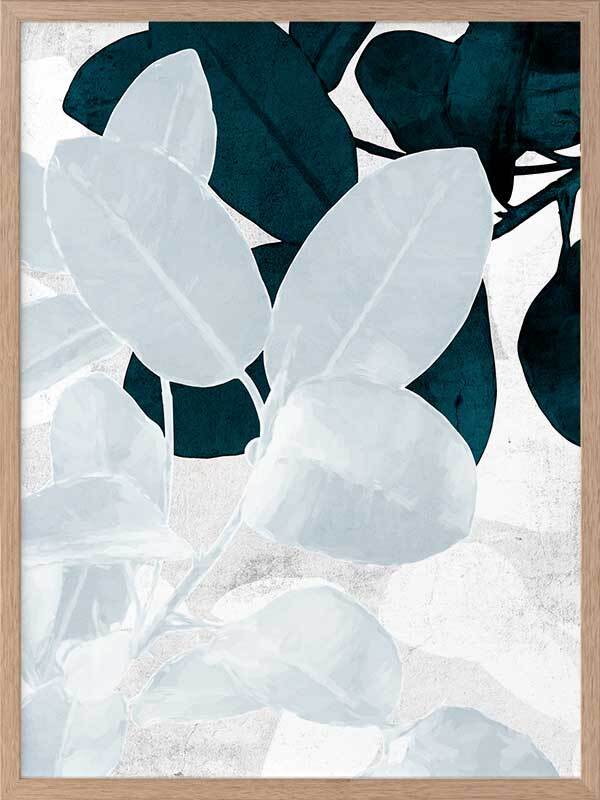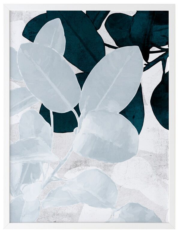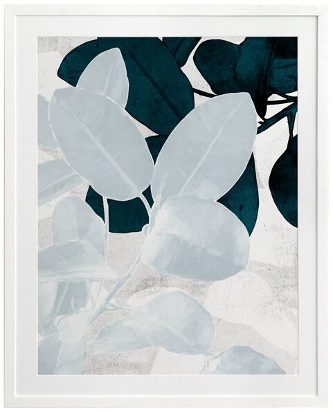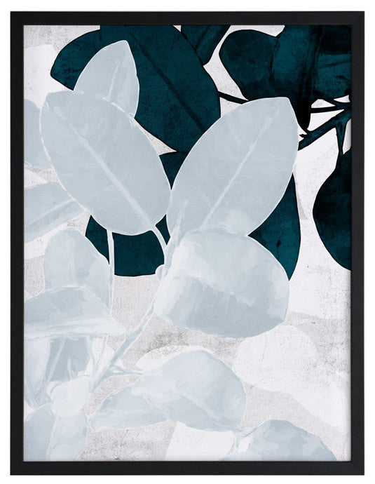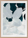 Exhale II Framed Print: An overlay of textured leaves in pastel blue and contrasting jade tones. Pairs with Exhale I. 2017 SPRING/SUMMER COLLECTION: RHAPSODY
