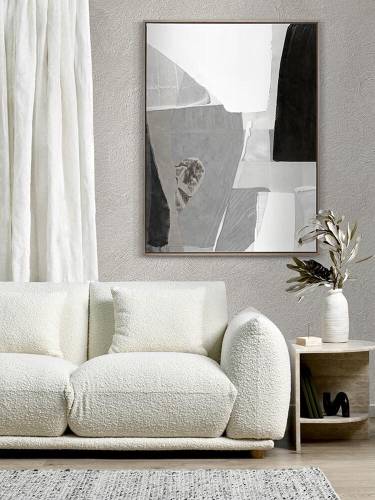 Faded Memories I Canvas Art Print - This abstract artwork, a symphony of monochrome shades, brings a touch of mid-century modern elegance to any space. With its harmonious blend of black, white, and grey hues, and fluid, organic shapes, this wall art evokes a fresh, calming vibe - perfect for enhancing any living room or bedroom.