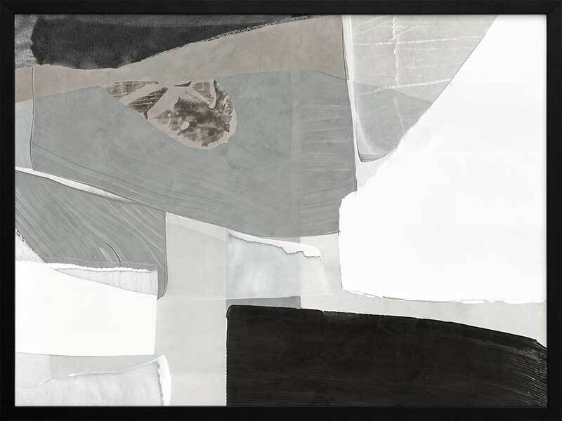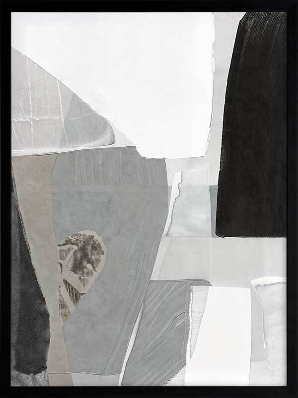 Faded Memories I Framed Art Print - This abstract artwork, a symphony of monochrome shades, brings a touch of mid-century modern elegance to any space. With its harmonious blend of black, white, and grey hues, and fluid, organic shapes, this wall art evokes a fresh, calming vibe - perfect for enhancing any living room or bedroom.