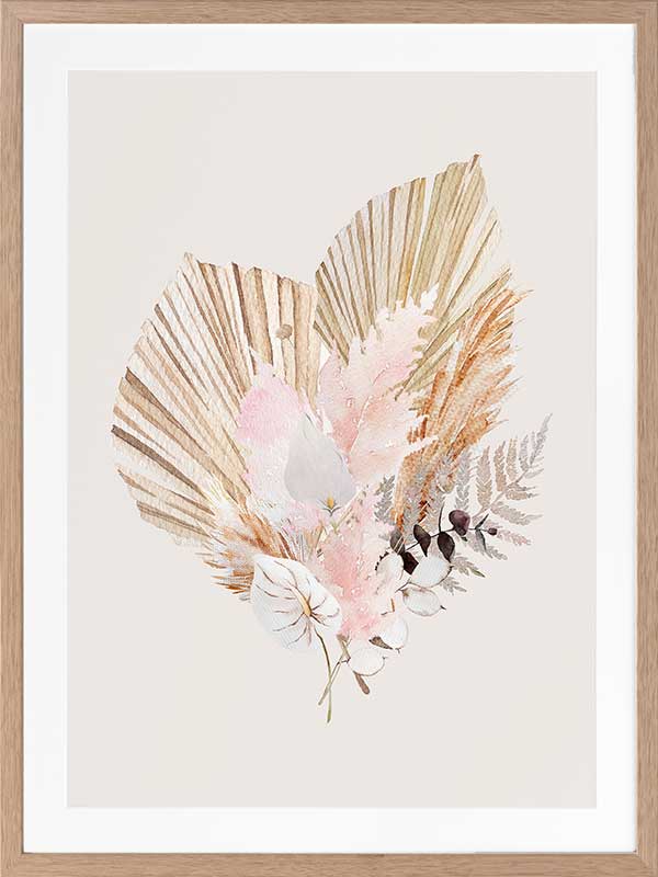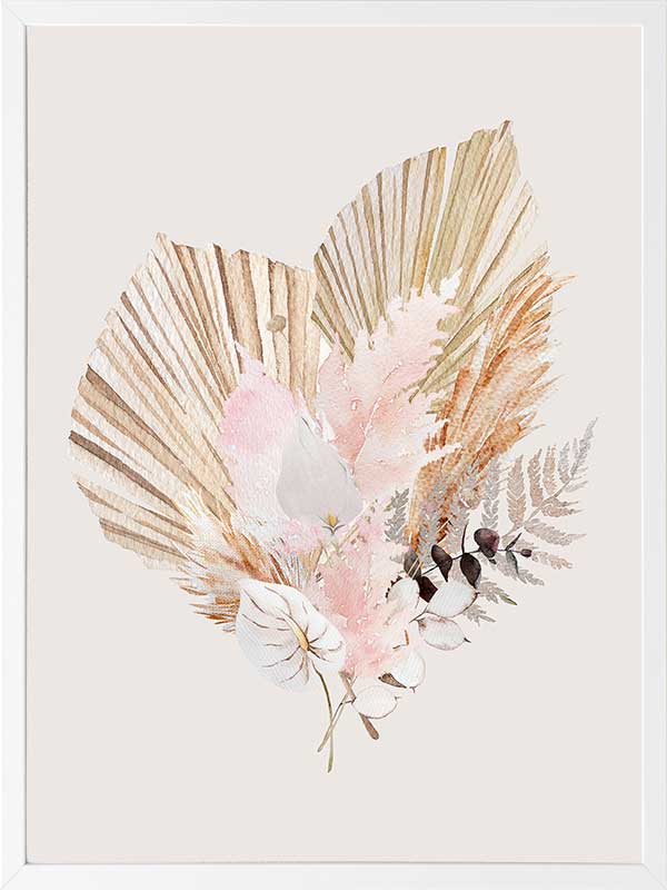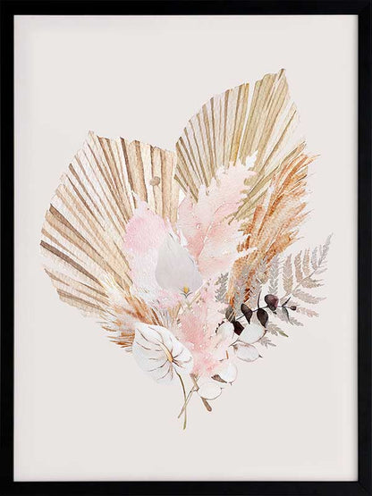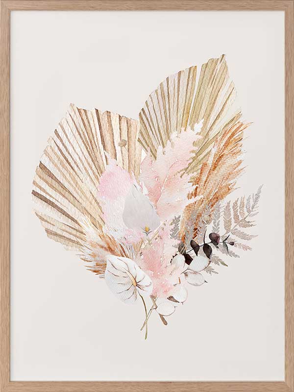 Fan Girl I - A watercolour illustration of a rustic, bohemian-inspired floral arrangement. Pairs with Fan Girl II.