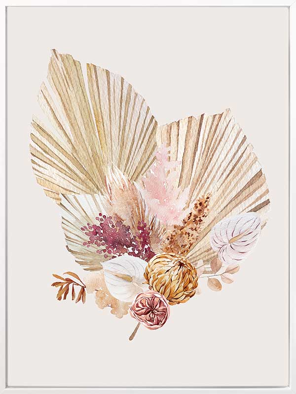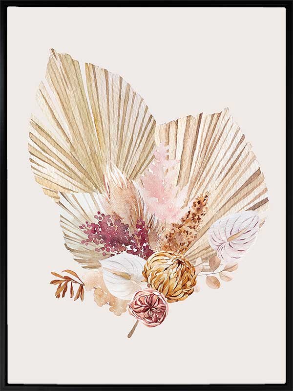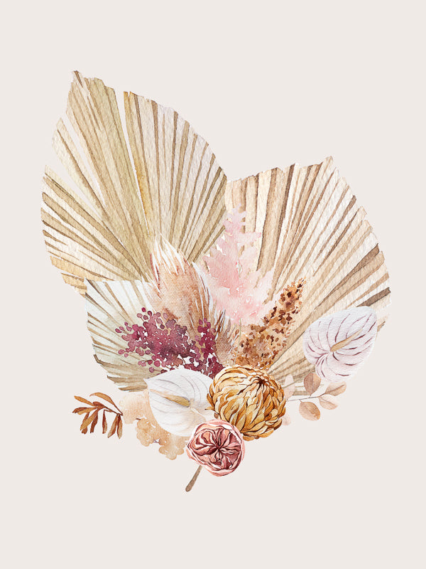 Fan Girl II - A watercolour illustration of a rustic, bohemian-inspired floral arrangement. Pairs with Fan Girl I.