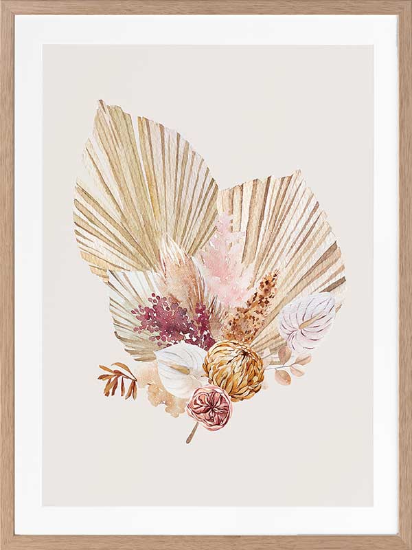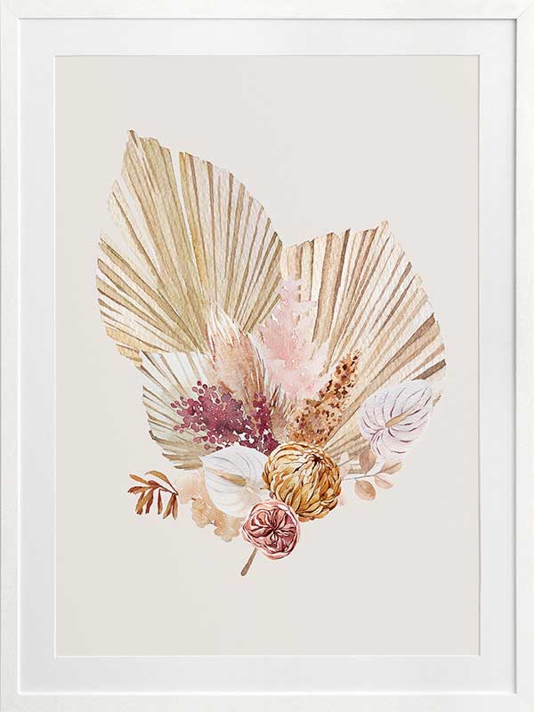 Fan Girl II - A watercolour illustration of a rustic, bohemian-inspired floral arrangement. Pairs with Fan Girl I.