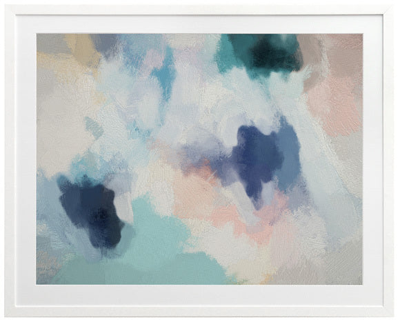 Fancy Free Framed Print: A soft and stunning abstract piece, with textured paint strokes in a light and airy pastel colour palette. 2017 SPRING/SUMMER COLLECTION: RHAPSODY