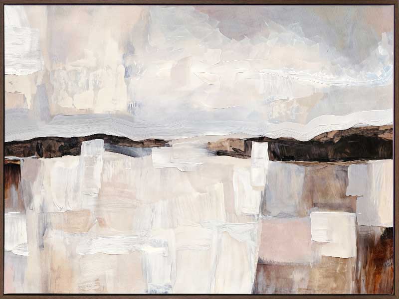 Farmland Dusk Canvas Art Print - Evocative and serene, this abstract art captures the quiet beauty of rural landscapes through subtle abstract forms and soft, muted earth tones. With calming beige, greys, and warm browns, this minimalistic art piece conveys simplicity and understated sophistication. Perfect for interiors craving modern rustic charm, it beautifully complements contemporary spaces with its timeless elegance.