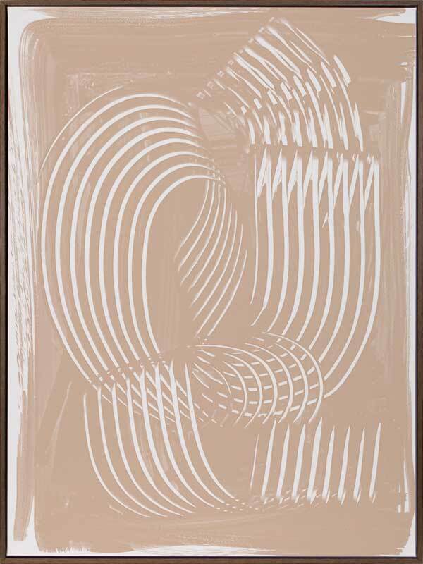 Fauves III Canvas Art Print - Textural, experimental and expressive, this simple abstract artwork uses paint strokes, curves and negative space to create an organic and mesmerising visual statement. The colour palette is muted and minimal, featuring white lines against a warm, nude background. Artwork matches with Fauves I, II and IV.