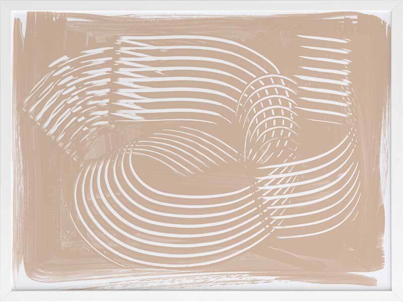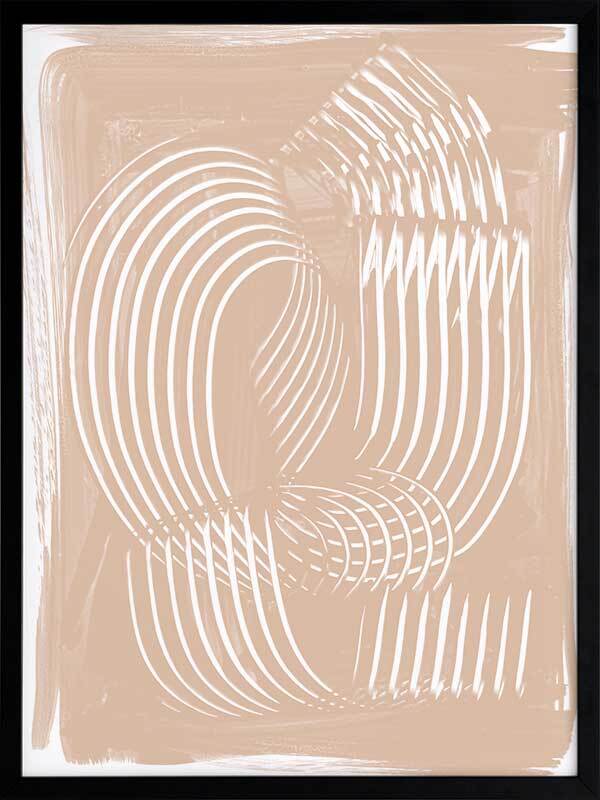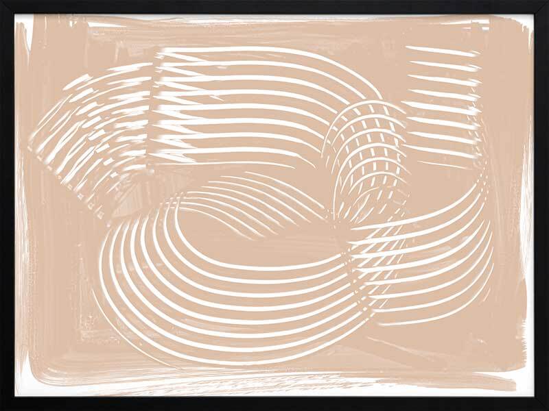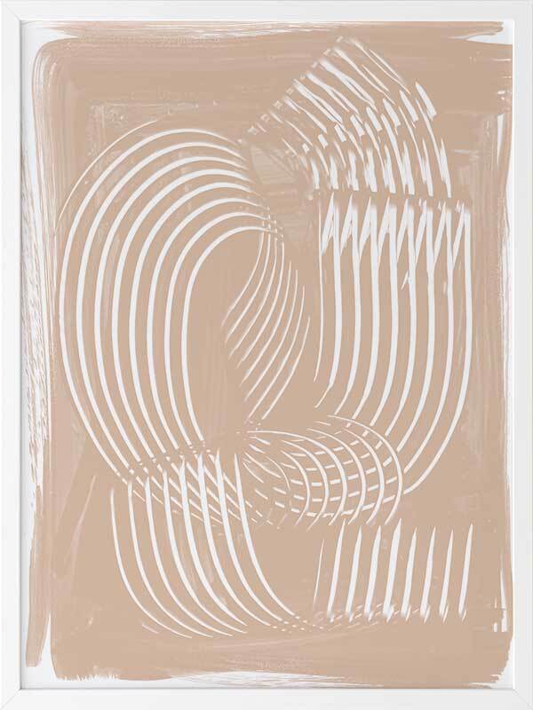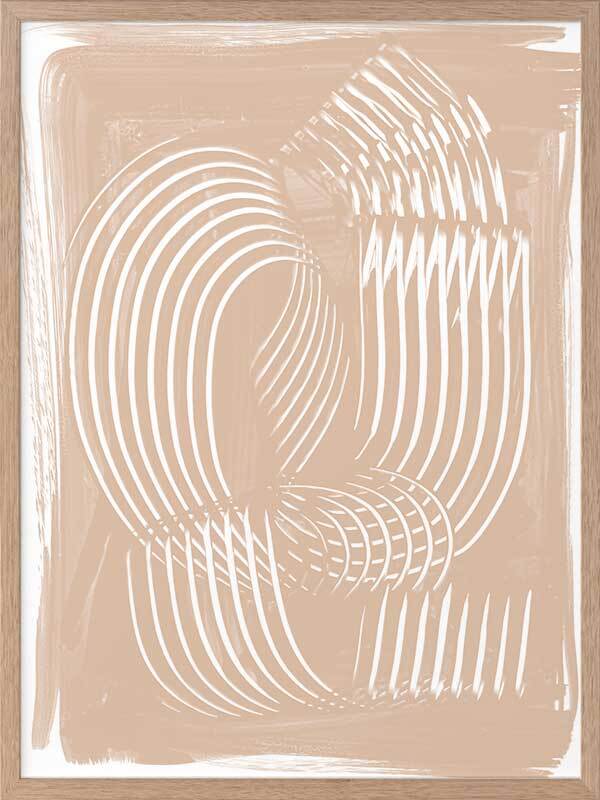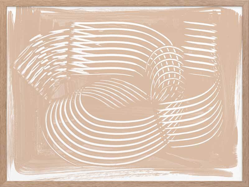 Fauves III Framed Art Print - Textural, experimental and expressive, this simple abstract artwork uses paint strokes, curves and negative space to create an organic and mesmerising visual statement. The colour palette is muted and minimal, featuring white lines against a warm, nude background. Artwork matches with Fauves I, II and IV.