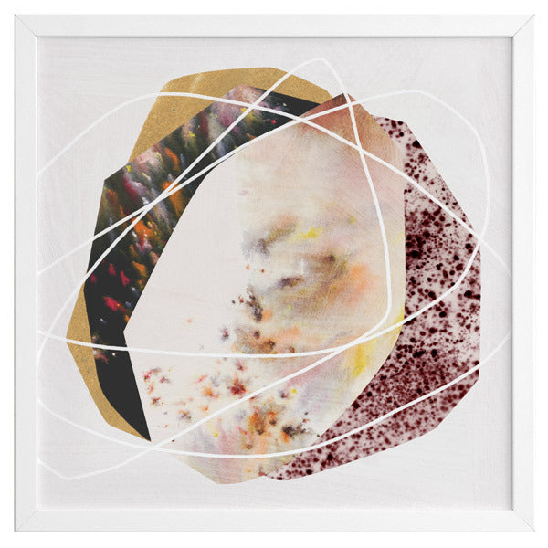 Fire Opal Framed Print: Inspired by the many facets of a semi-precious stone, Fire Opal is a beautiful exploration of colour, texture and movement, in red, yellow and gold tones. Pairs with Tiger's Eye. 2018 SPRING/SUMMER COLLECTION: REMINISCE