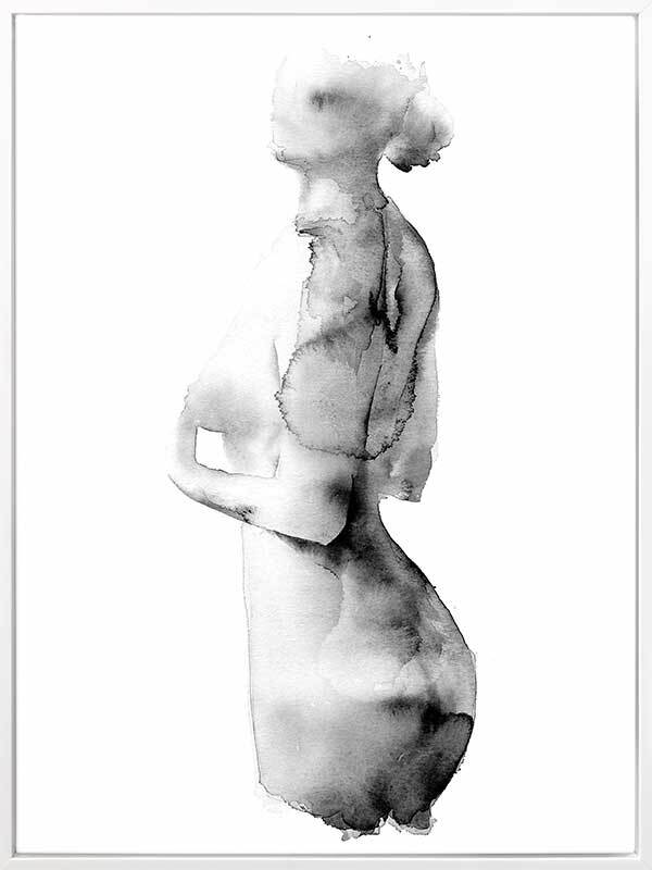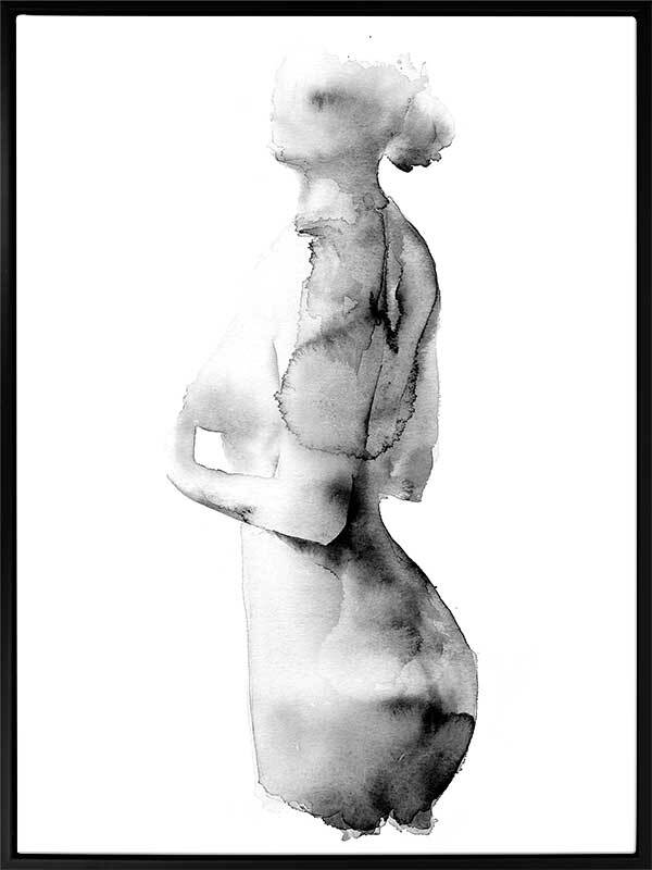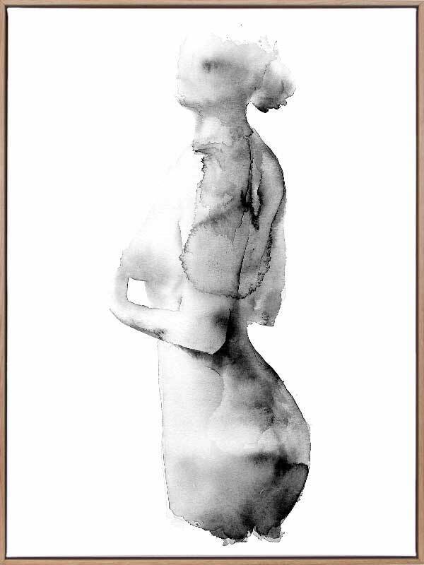 Flawless Female Charcoal II Canvas Art Print - Soft and delicate, this beautiful artwork features an organic, watercolour illustration of a nude female figure. The monochromatic colour palette features a soft black and grey figure against a white background.