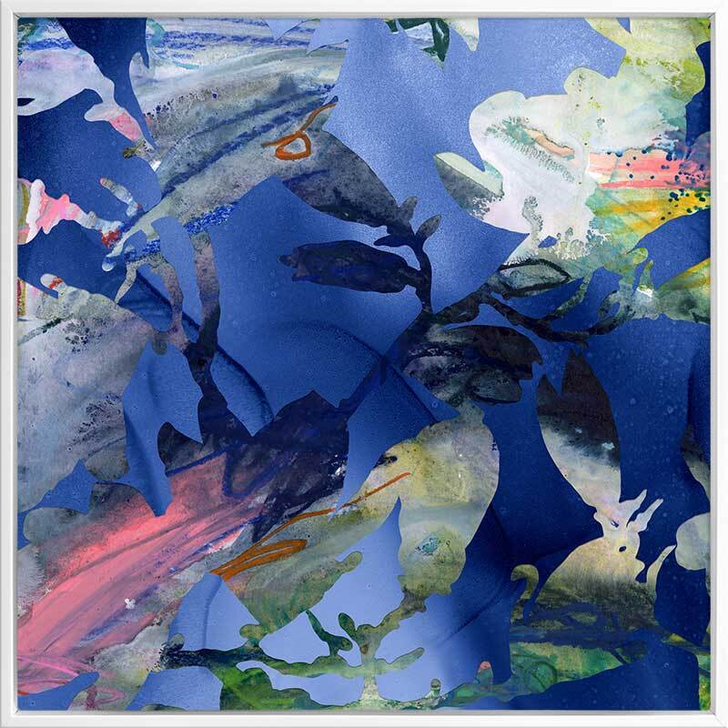 Floralia Canvas Art Print: A vibrant abstract featuring floral cutouts and a bright blue, pink and green colour palette. 2020 AUTUMN/WINTER COLLECTION: REVERIE