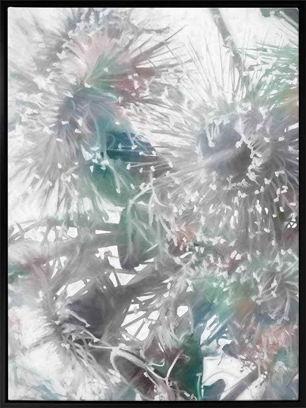 Flowering Gum II Canvas Art Print - Abstract painting of flowering gumnuts on a Eucalyptus tree, a modern twist on a floral still life. 2016 WINTER COLLECTION: INSPIRE