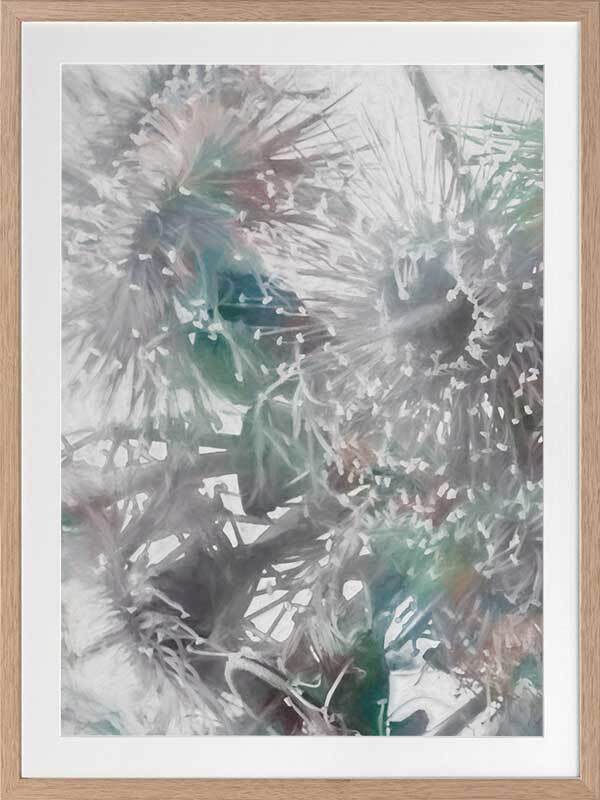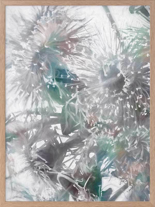 Flowering Gum II Framed - Abstract painting of flowering gumnuts on a Eucalyptus tree, a modern twist on a floral still life. 2016 WINTER COLLECTION: INSPIRE