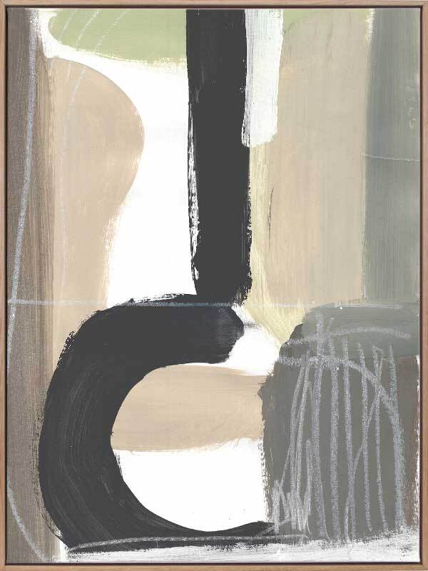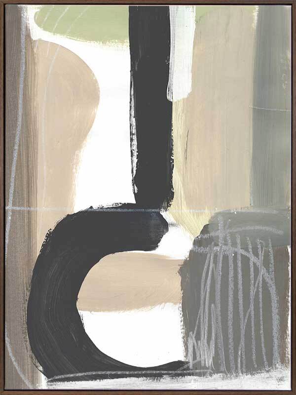 Formation II Canvas Art Print - If you're looking to bring an effortlessly cool and modern piece of art to your wall, this is the piece! Abstract strong lines and shapes make up this moody piece. Featuring thick paint strokes of black, beige and grey with white etchings and strokes for contrast. For a complete set pair with the Formation I artwork.
