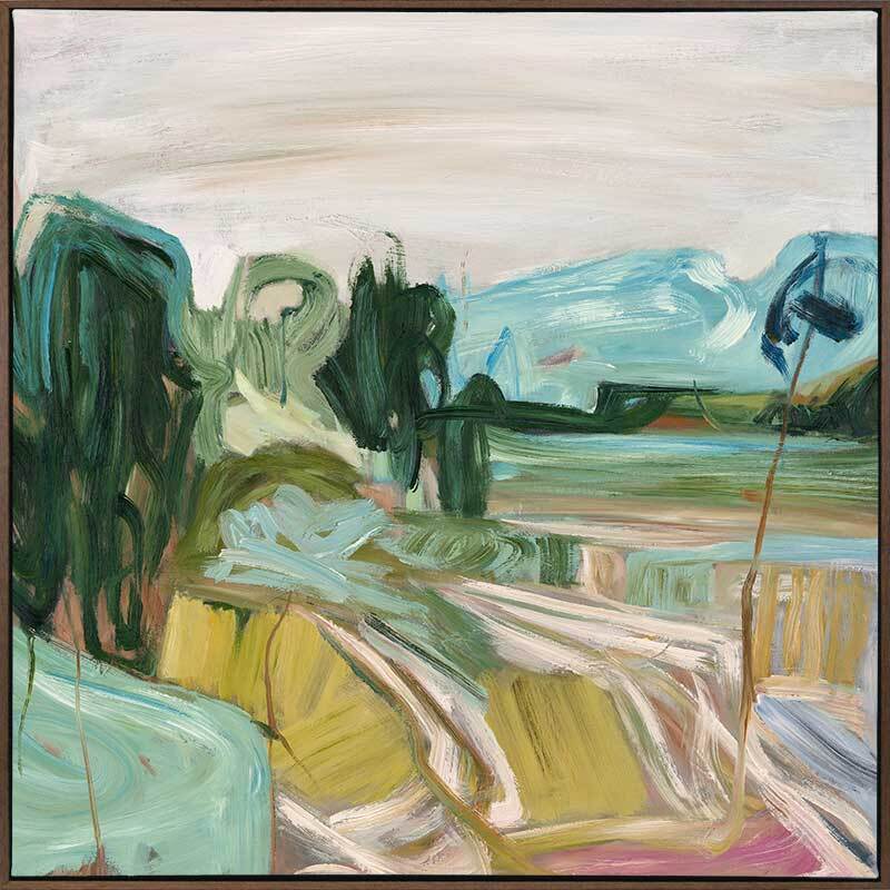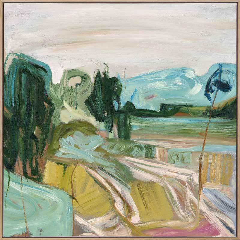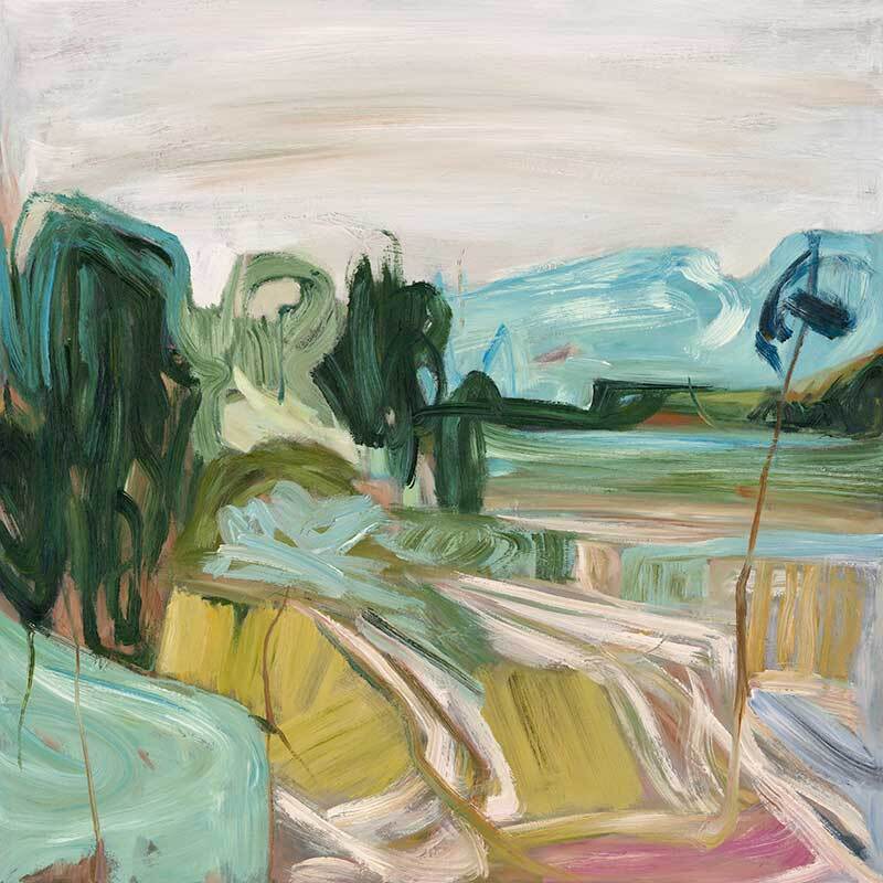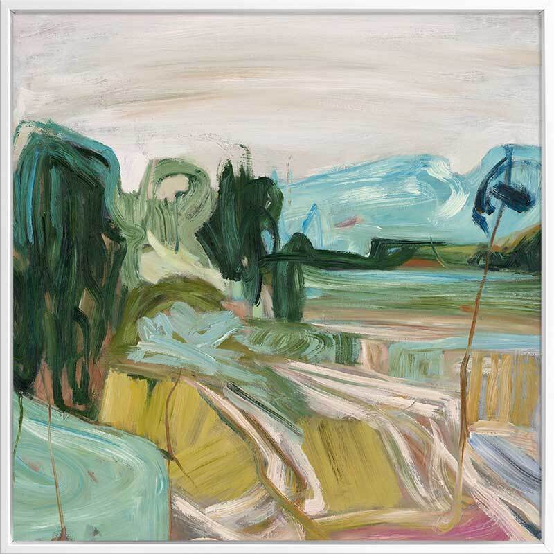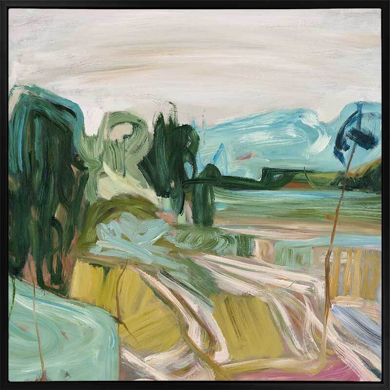 Formless Fields Canvas Art Print - This abstract art takes inspiration from landscapes where shapes and lines collide, with layered brush strokes and unblended colours for a chaotic, yet playful feel. A palette of light and dark green, yellow, blue, and a hint of pink makes this the perfect pop of colour for any space.