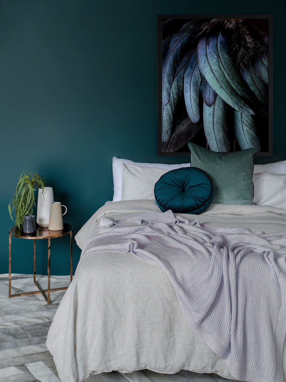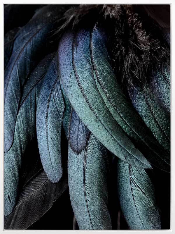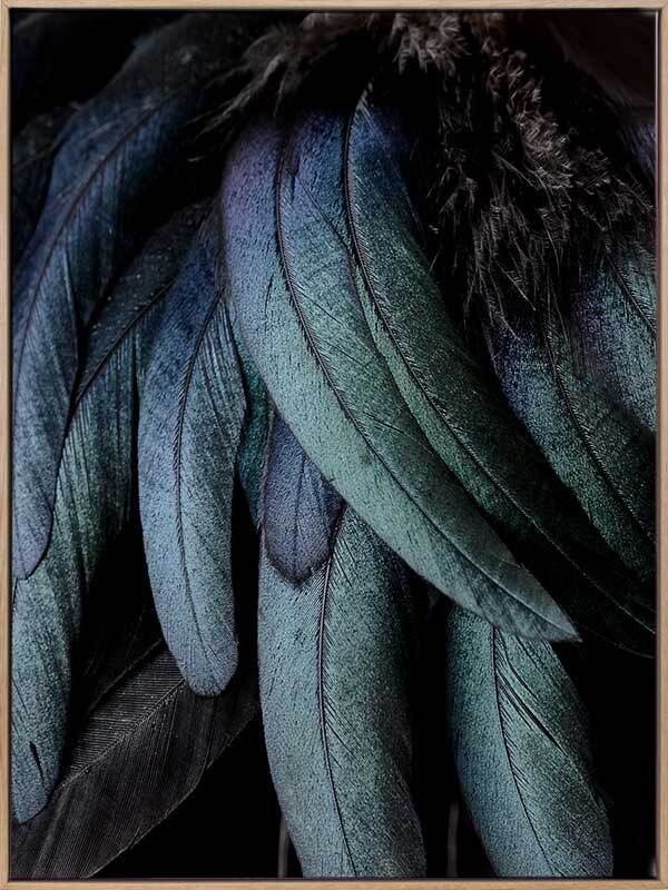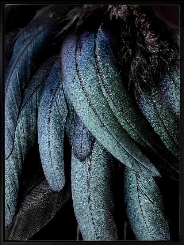 Fowl Play Canvas Art Print: A close-up photographic image of a birds jade green and navy blue feathers. 2018 AUTUMN/WINTER COLLECTION: CONTINUUM