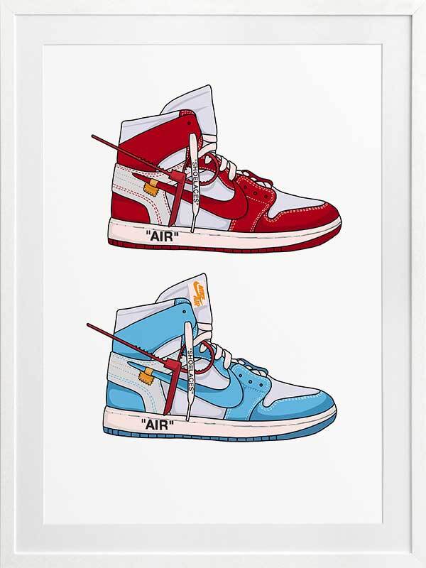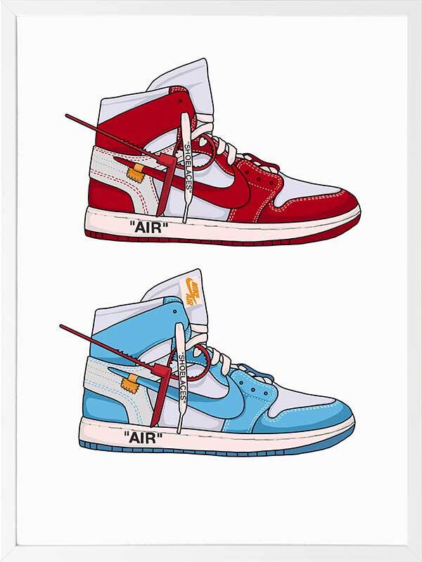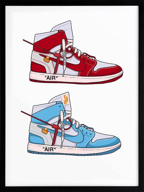 The Walking on Air Collection features a series of graphic artworks depicting timeless Air Jordan sneakers, from their collab with Dior to their classic Jordan 1's. Using clean lines and soft tones, each piece has a fresh, yet timeless energy to it, bringing the subject front and centre with stark backgrounds and minimal details. From berry red tones to soft blues, yellows and greens, each piece brings its own unique vibe to your space.