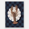 Freshwater Deep Blue Unframed Art Print - A captivating still life piece leaving this freshly caught freshwater crayfish front-and-centre, illuminated by a white decorative plate against a simple checkerboard tablecloth. Palette includes two shades of deep blue, with reddish-brown tones used for the crayfish.
