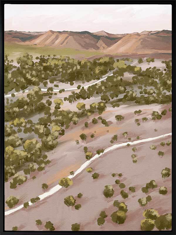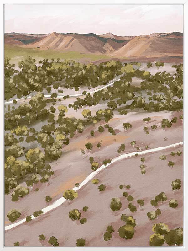 From Dusk Til Dawn Canvas Art Print - That magic moment when you suddenly see your surroundings change to the most transformational shades of dusky pinks and purples. Driving through that special outback spot, with olive green trees, on an outback road to the hazy tablelands - priceless. This painterly landscape captures the moment effortlessly. Hang in any room, and it will be the perfect reminder to take that trip!
